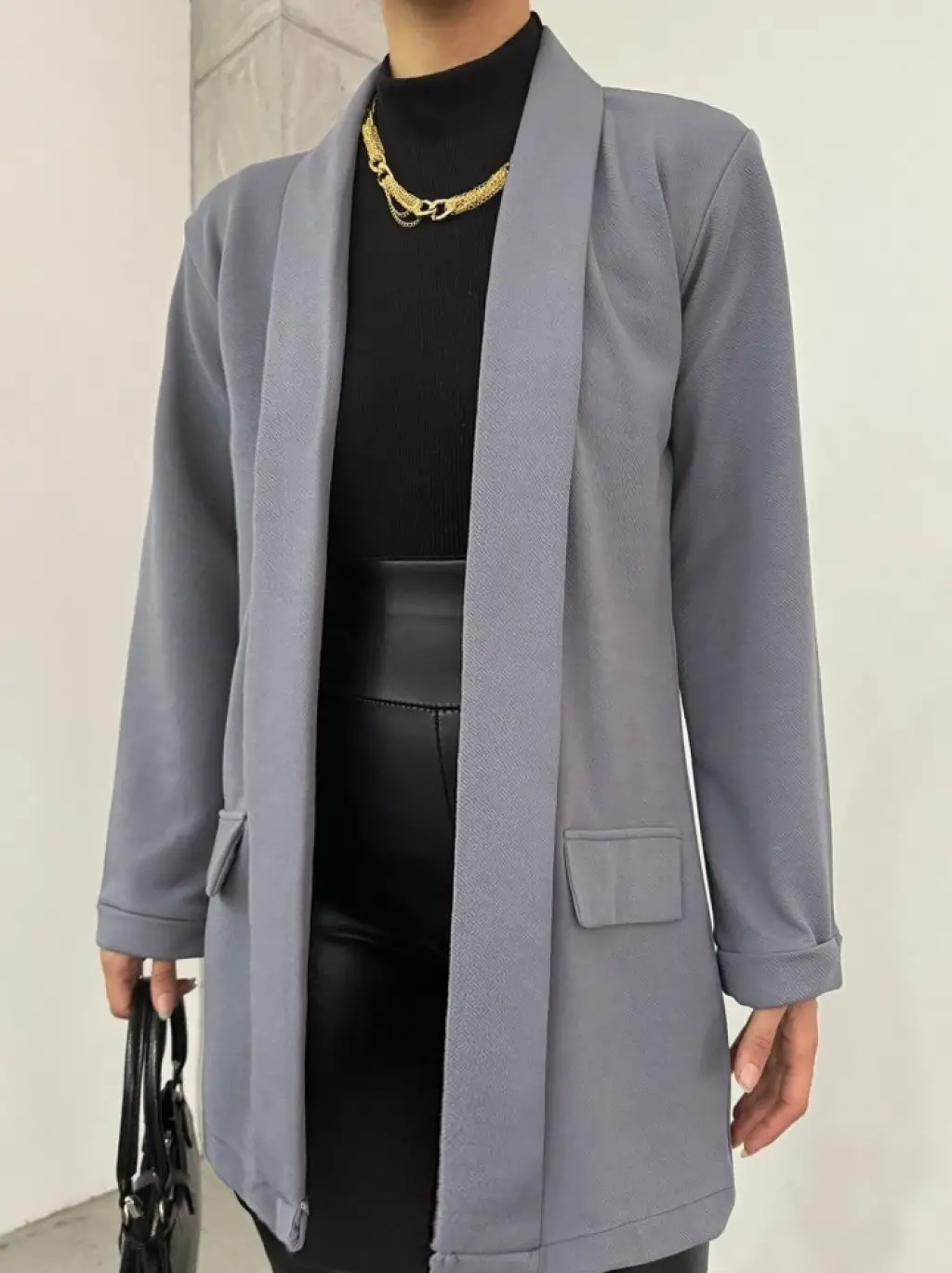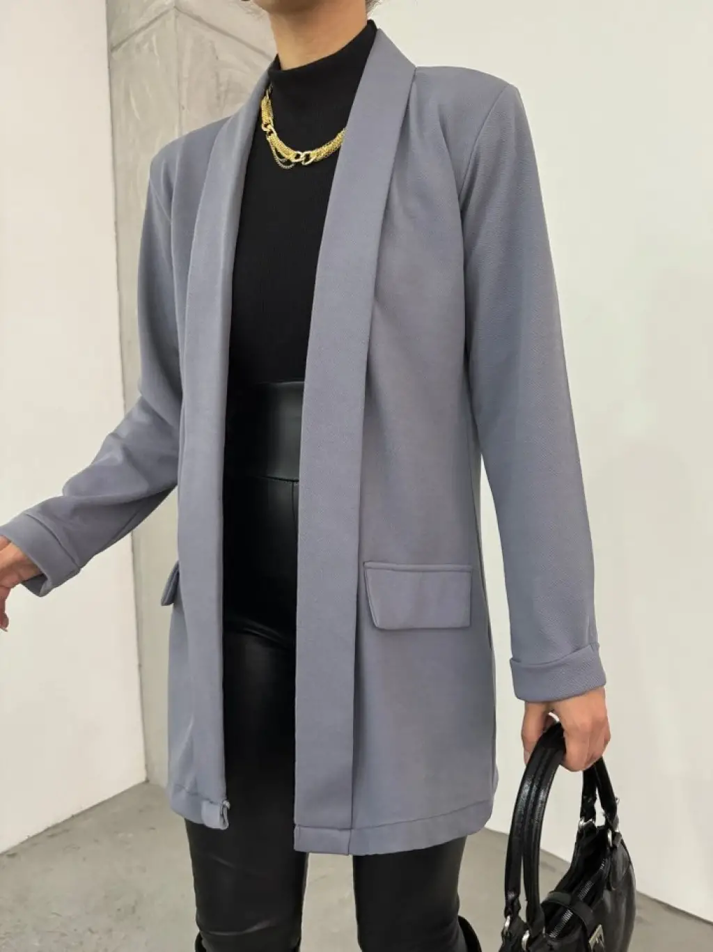 Gri Katlamalı Cep Detaylı Krep Ceket