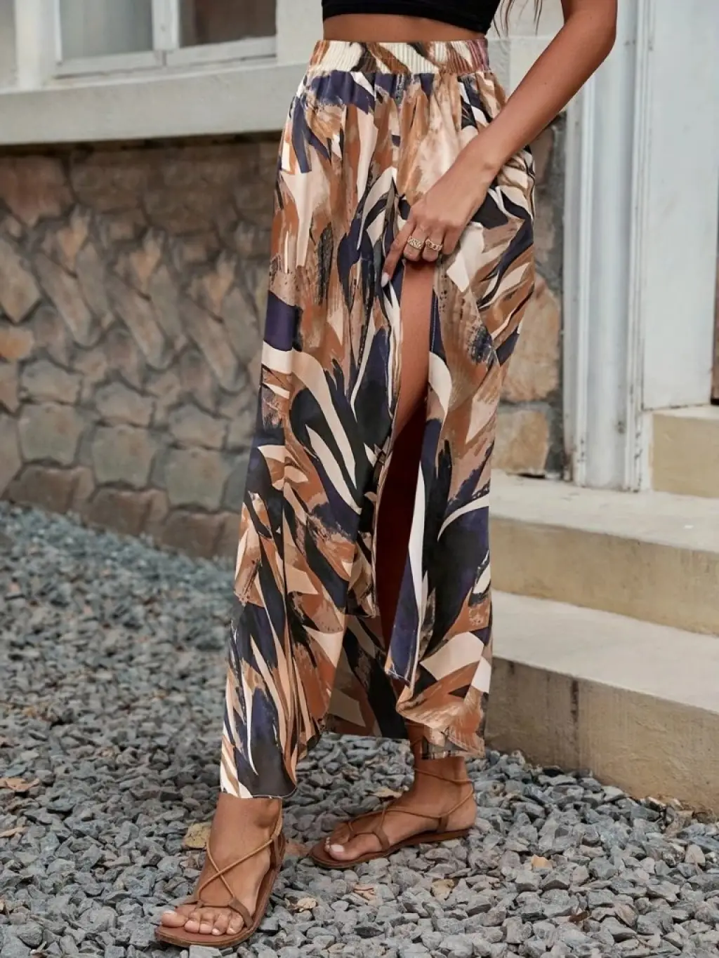 Kadın Beli Büzgülü Yandan Yırtmaçlı Desenli Süprem Etek