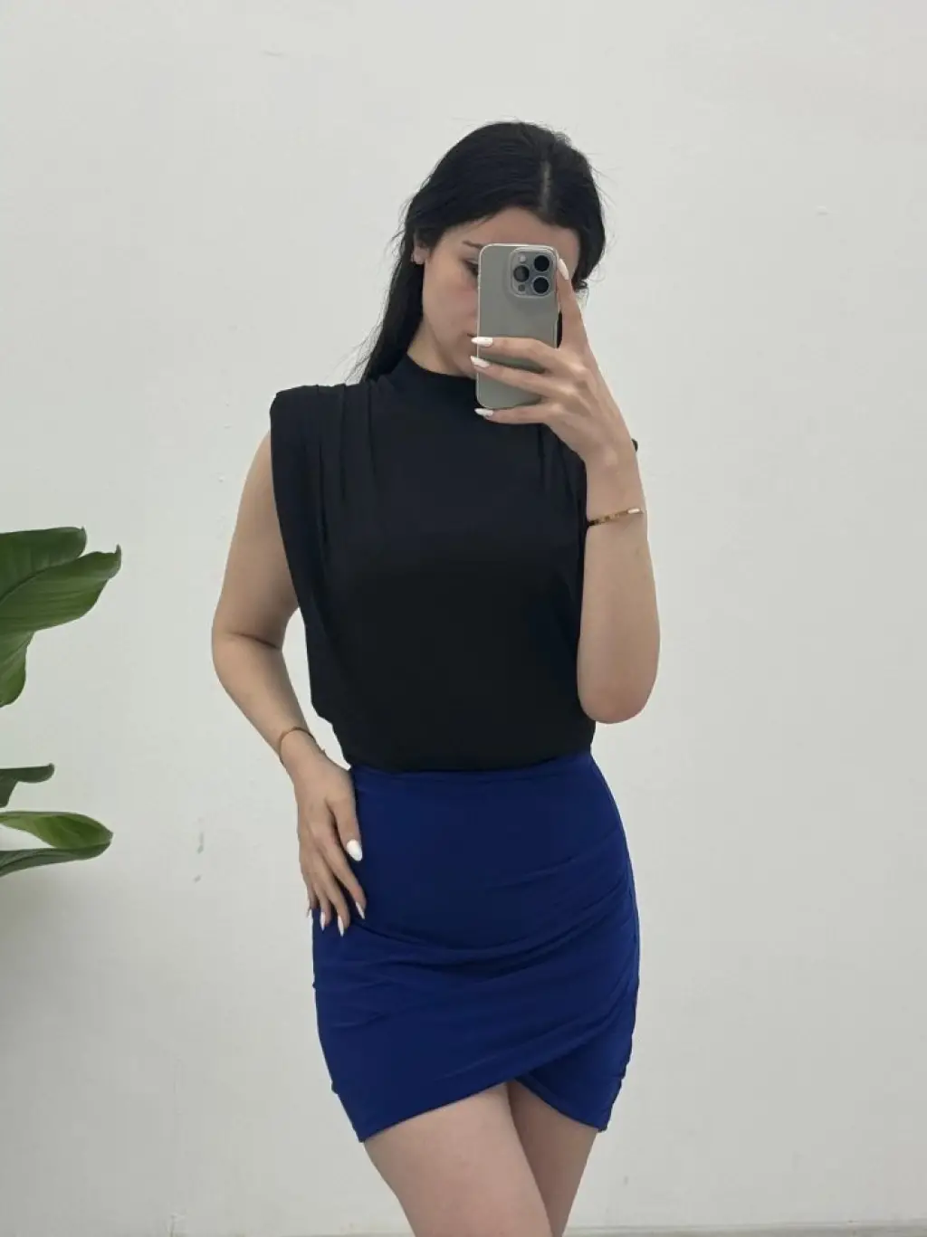 Sıfır Kol Vatkalı Sandy Bluz -Siyah