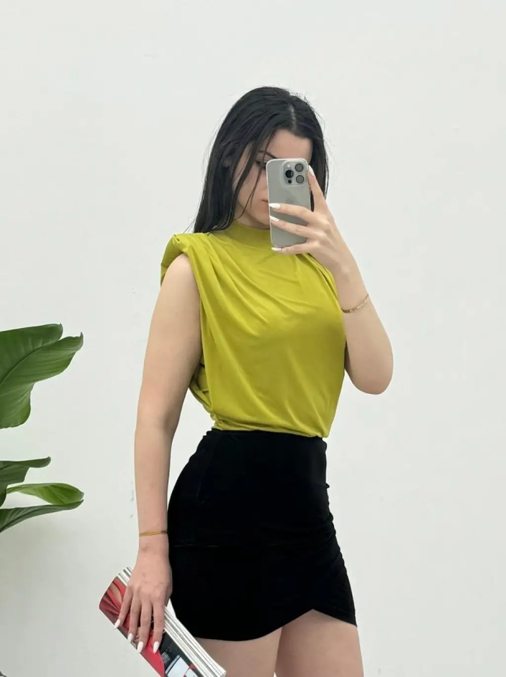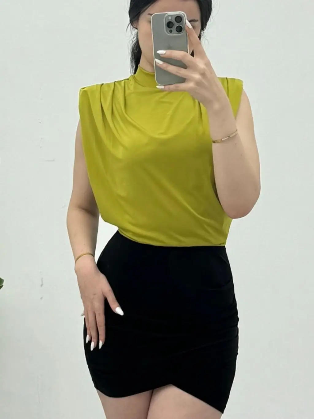 Sıfır Kol Vatkalı Sandy Bluz -Yağ Yeşili
