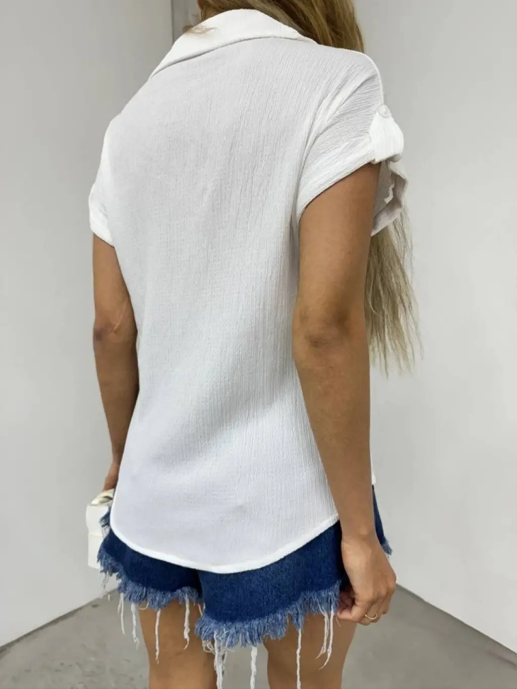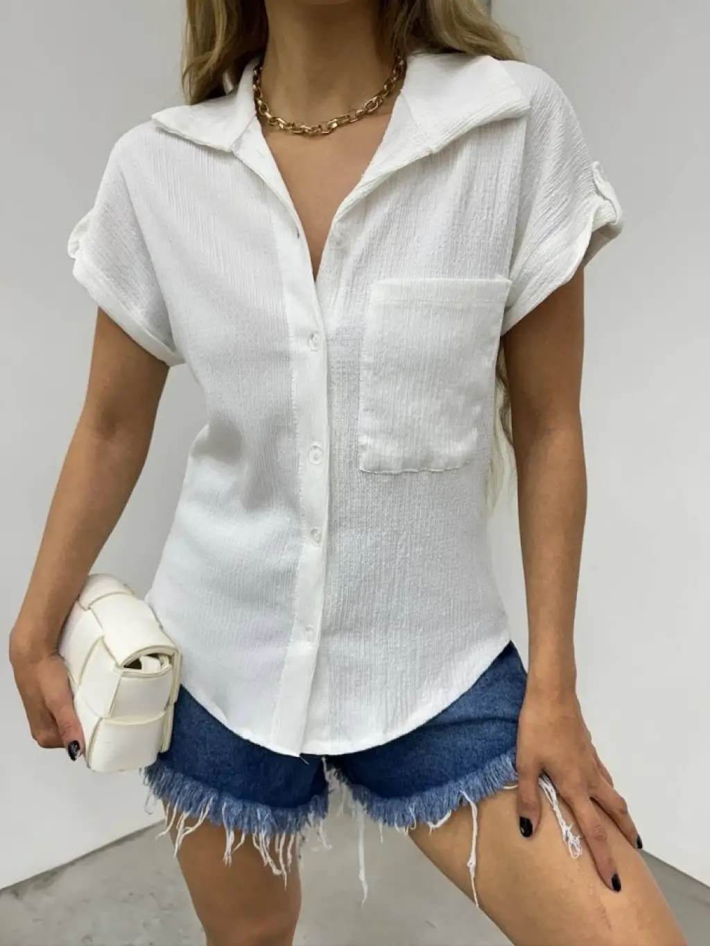 Duble Kol Tek Cepli Bürümcük Gömlek -Beyaz