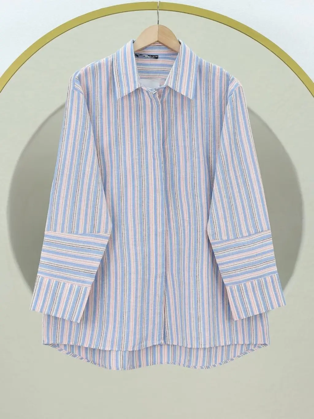 Çizgili Oversize Gömlek 20293 - E.Yeşil