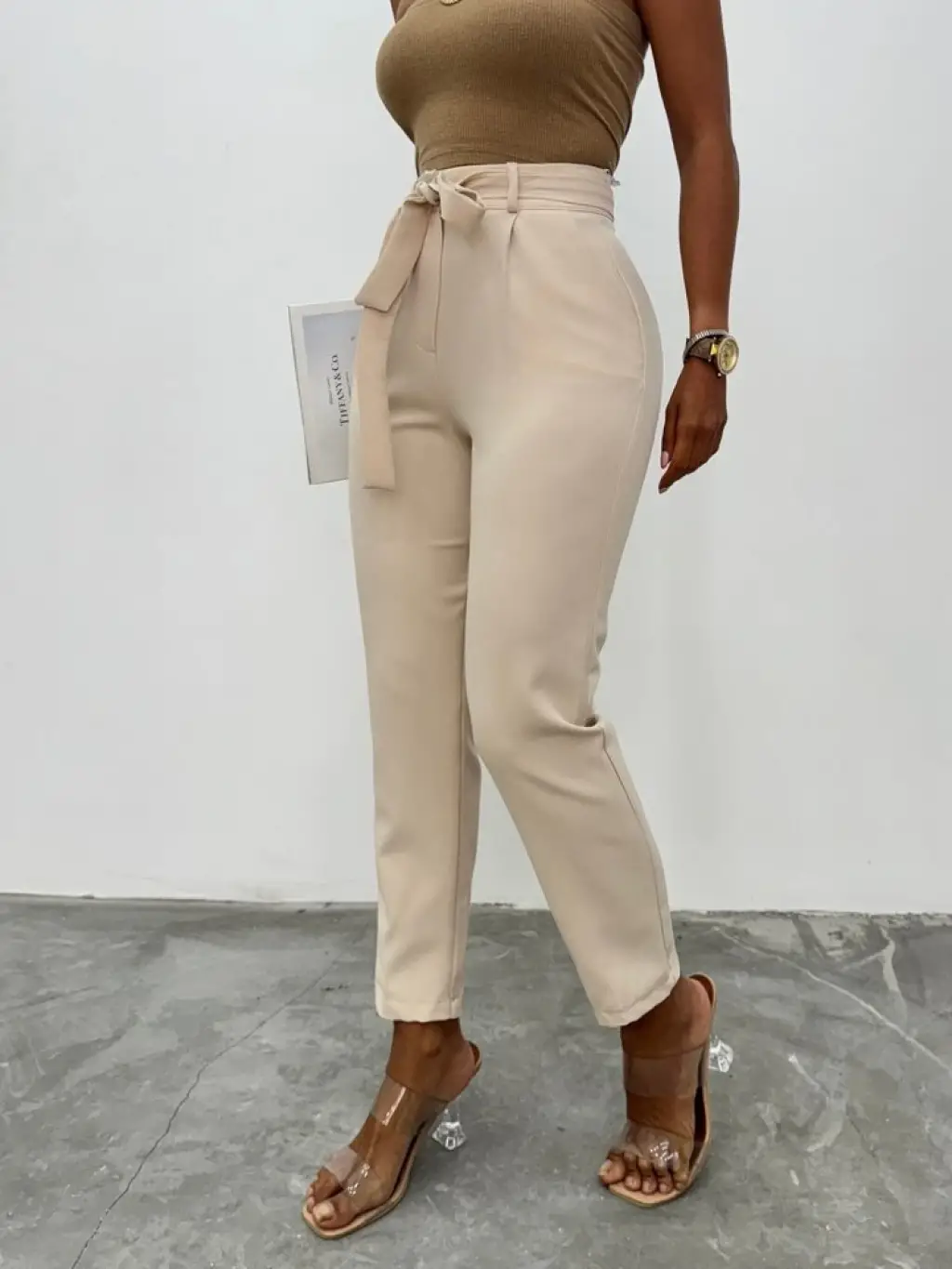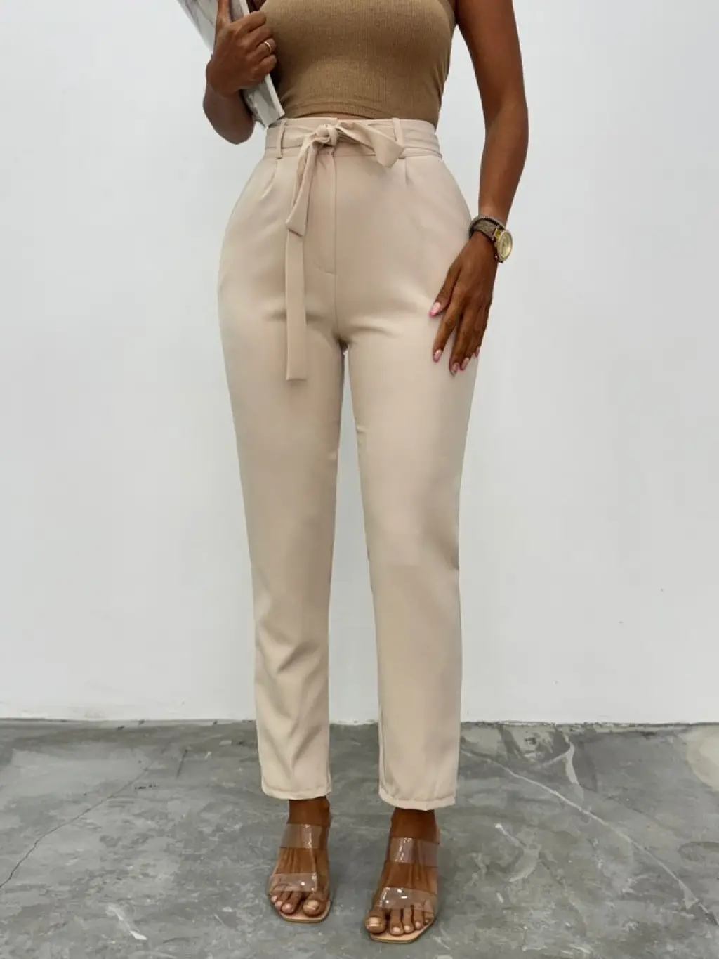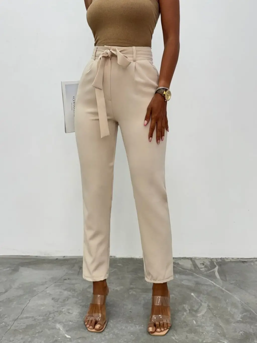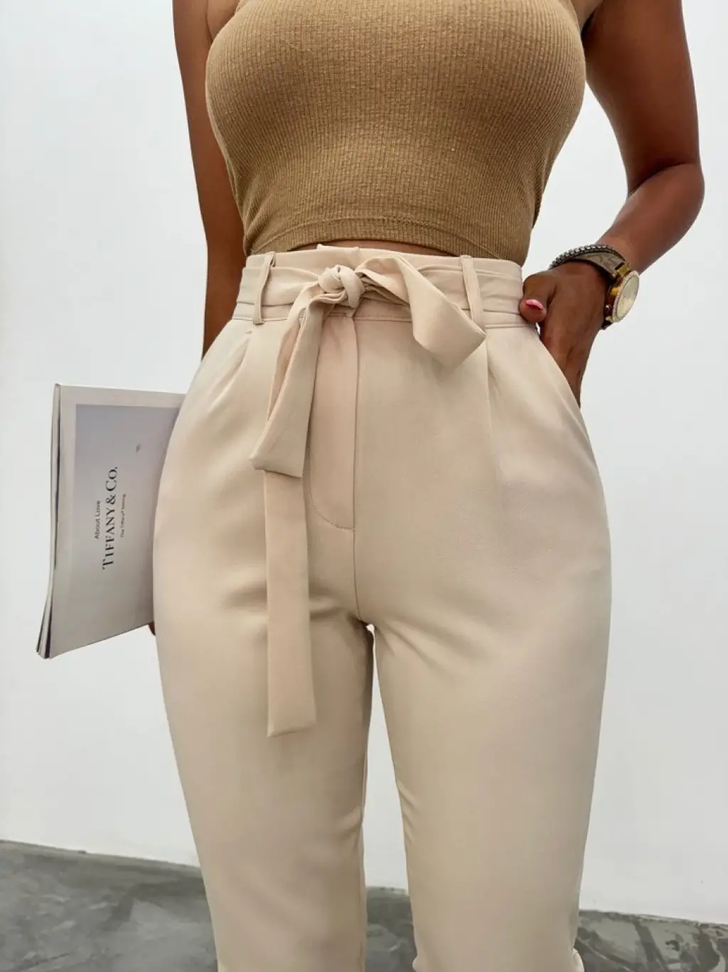 Kemerli Bilek Pantolon -Bej