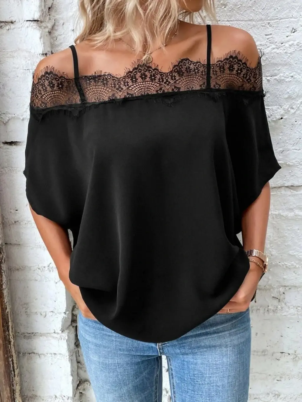 Kadın Askılı Dantel Janjan Krep Bluz