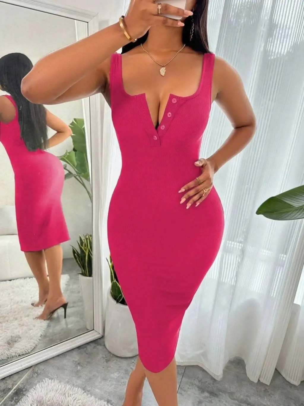Kadın Askılı önü Düğmeli Midi Kaşkorse Elbise