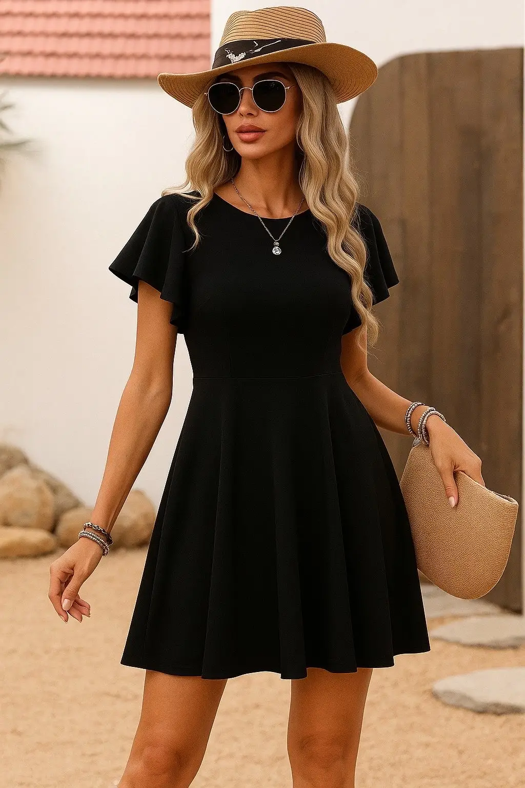 Omarı Elegan Kadın Elbisesi - Kısa Kelebek Kollu ve Bisiklet Yaka