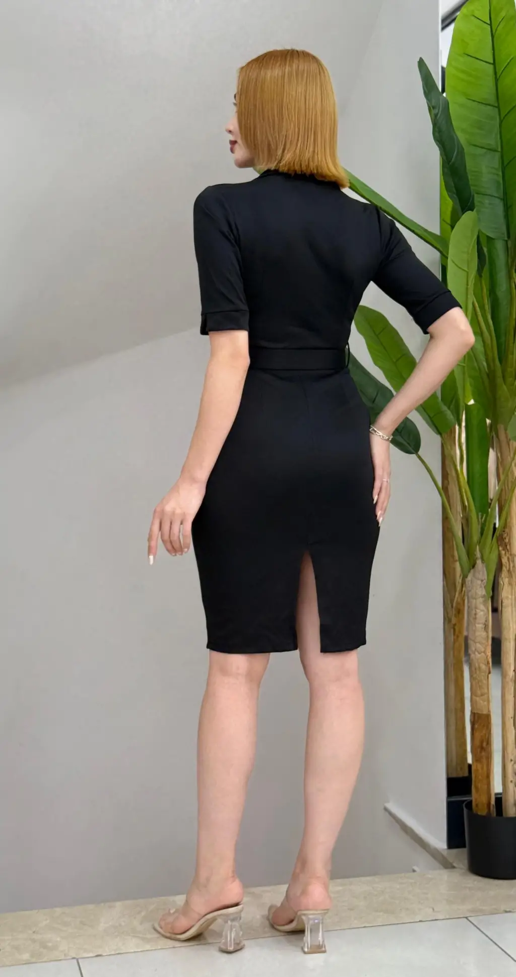Sıfır Kol Kuşaklı Ayrobin Elbise 2568 - Siyah