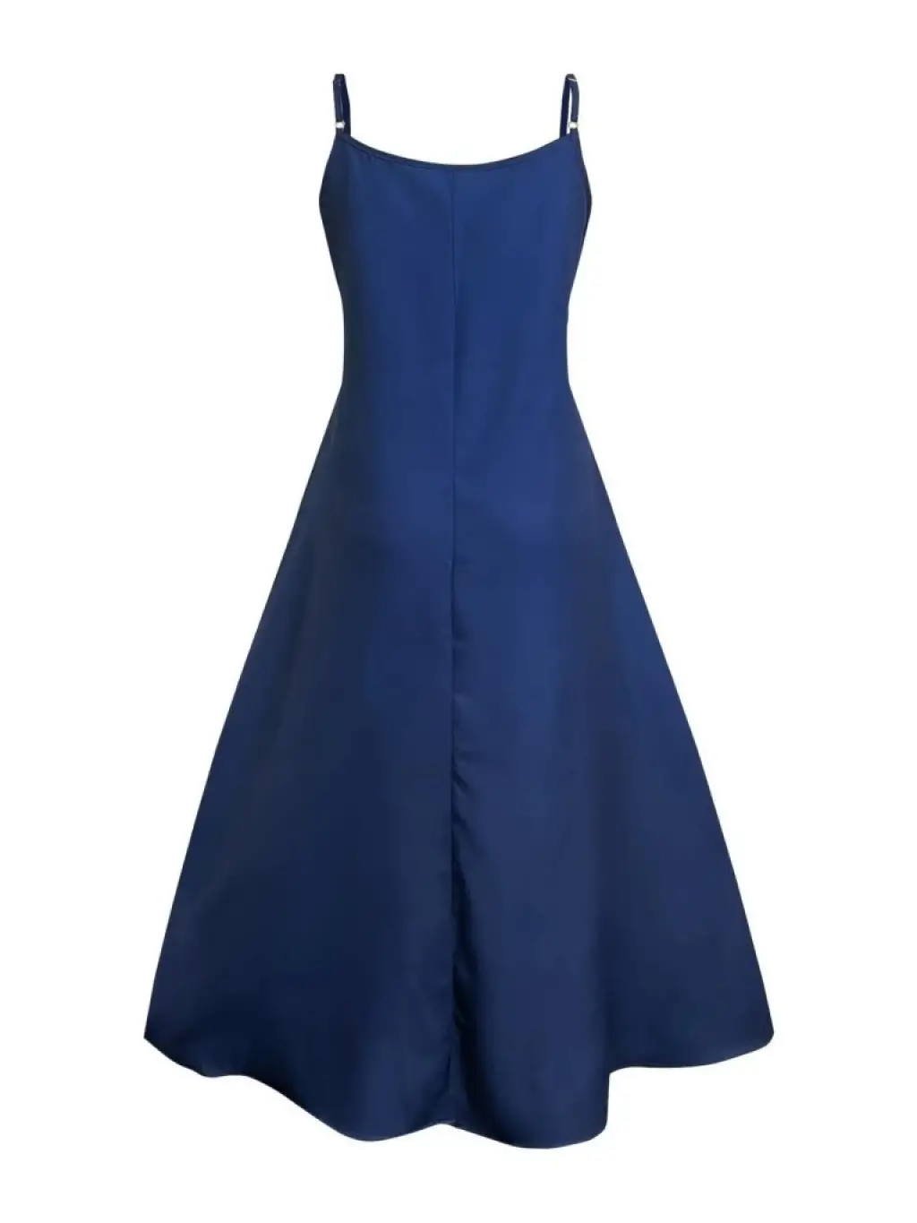 Kadın Sıfır Kollu Bisiklet Yaka Belden Büzgülü Yırtmaç Detaylı Janjan Krep Elbise