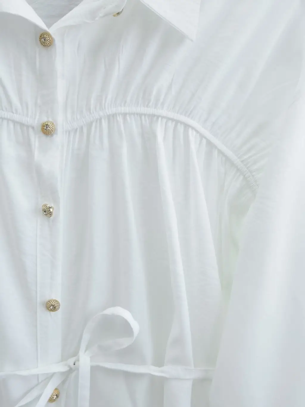 Robadan Büzgülü Beli Bağcıklı Gömlek -Beyaz