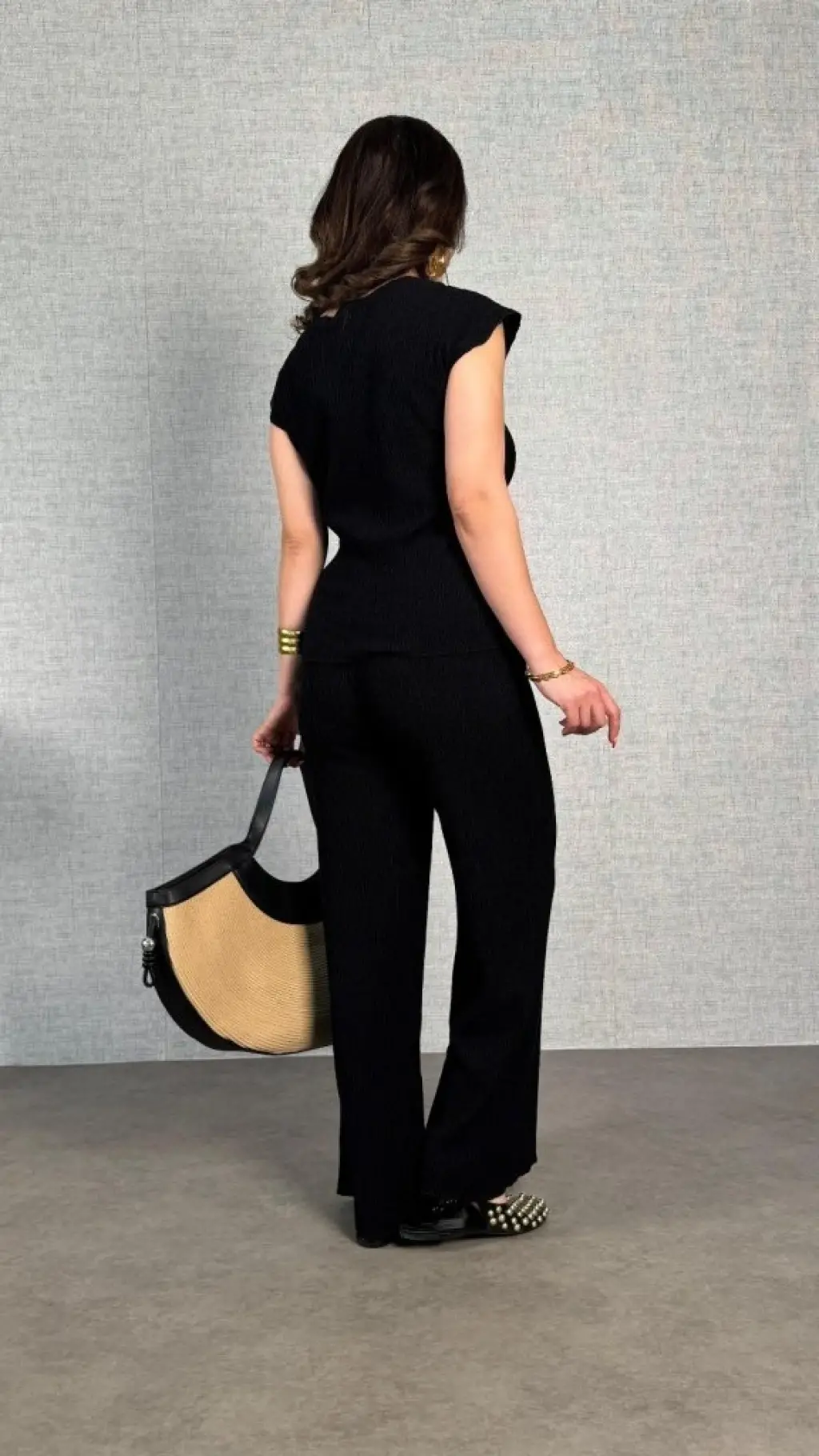 Kimono Pantolon Kumaş Takım 30054 - Siyah