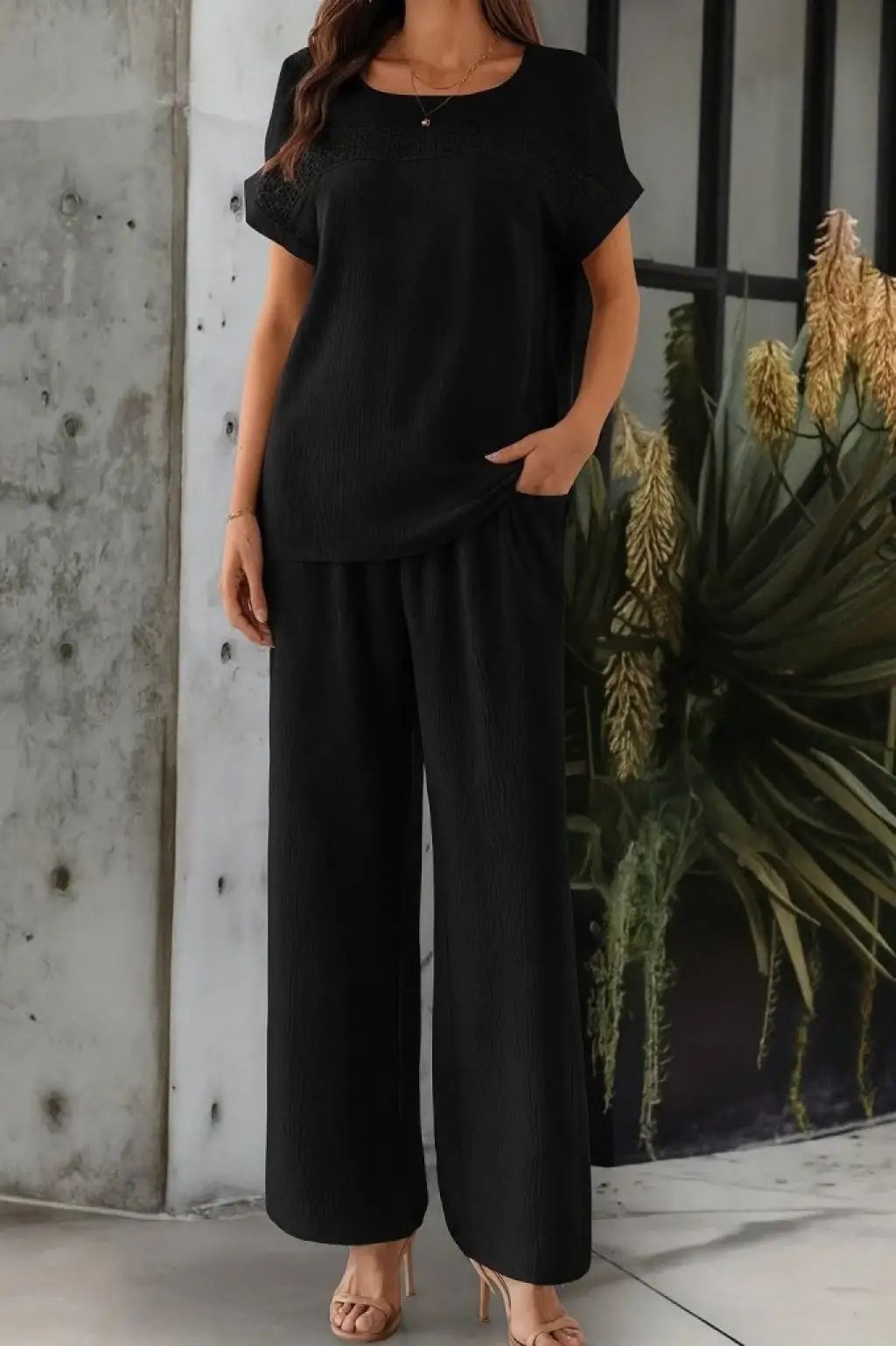 Kadın Kısa Kollu Yakası Açık Aerobin Bluz Ve Pantolon Ikili Takım