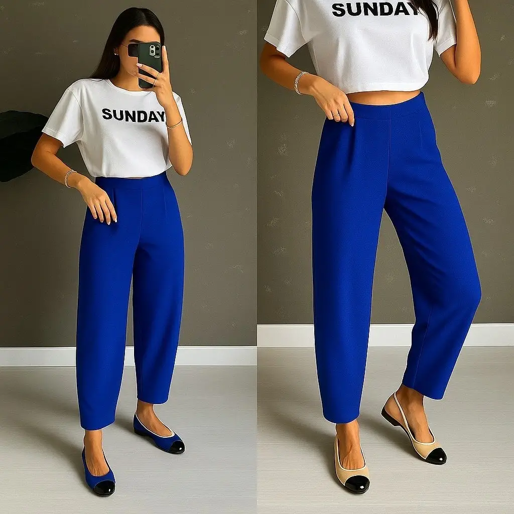 Kadın Yüksek Bel önden Fermuarlı Ithal Krep Pantolon