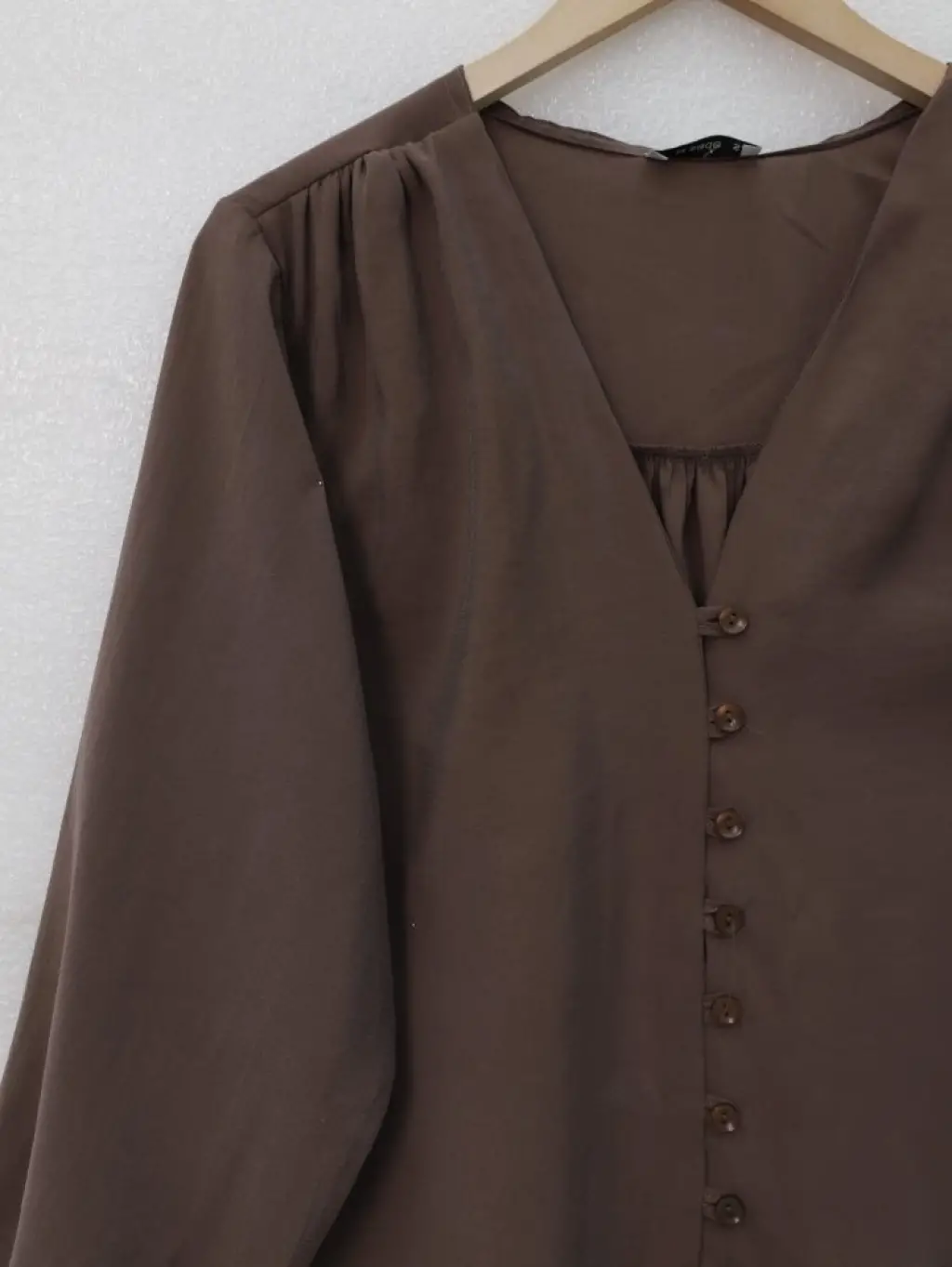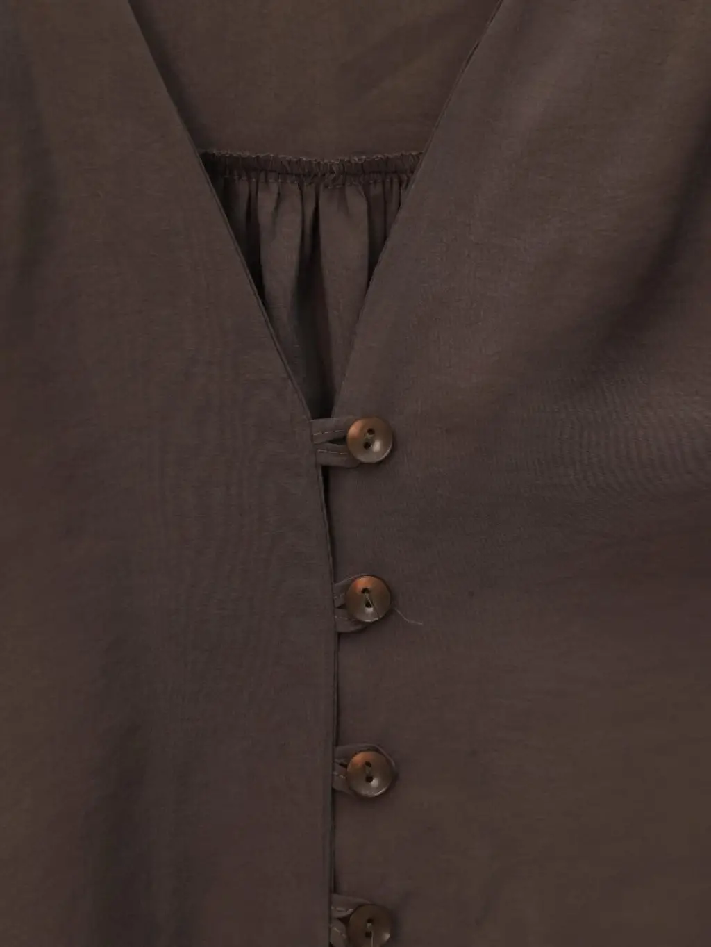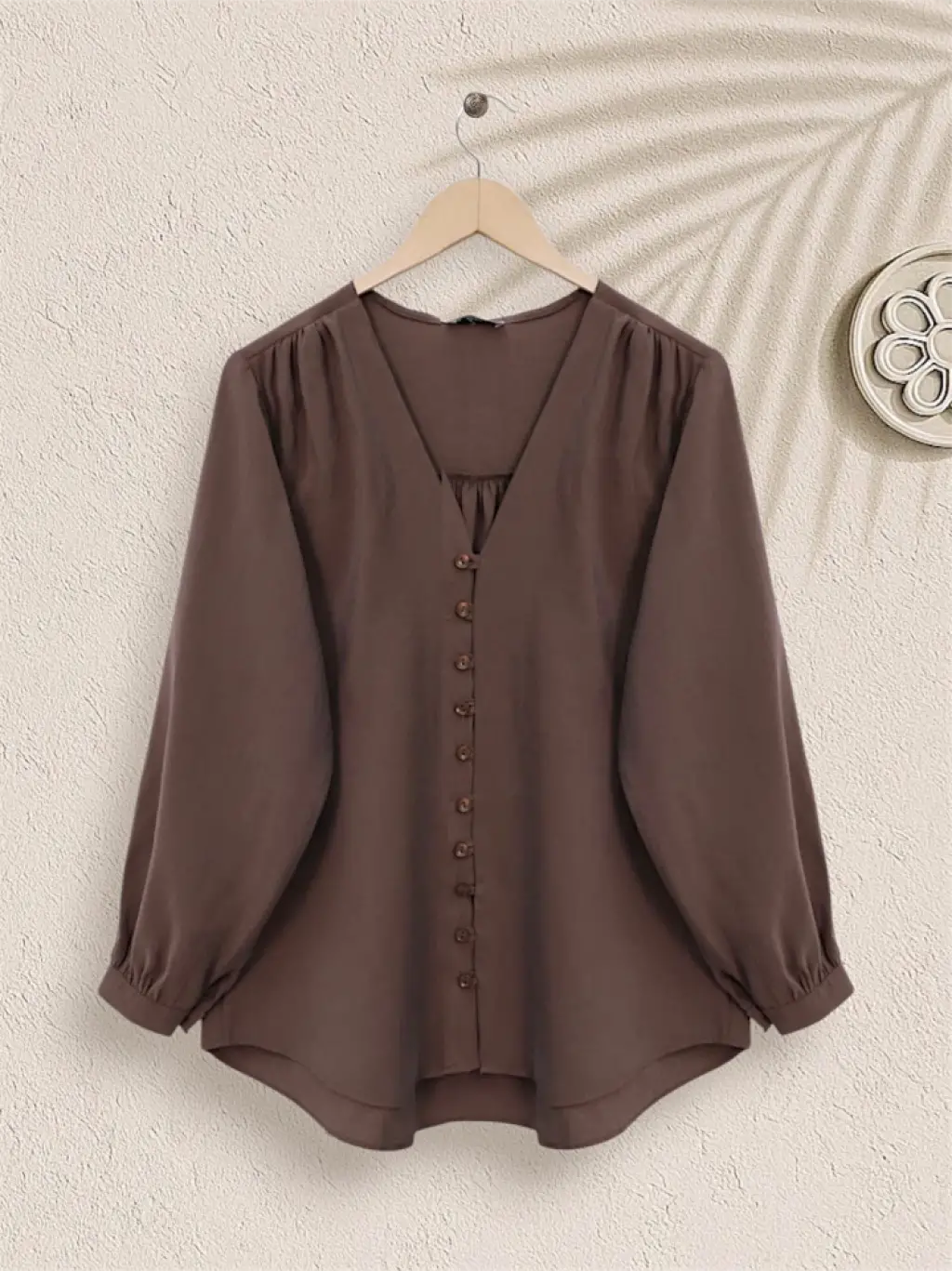 V Yaka Düğmeli Arkası Uzun Gömlek -Kahve