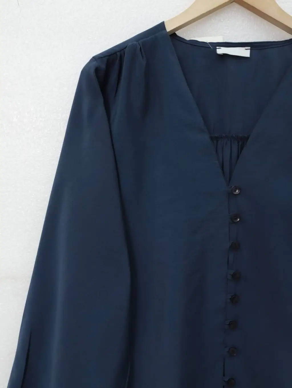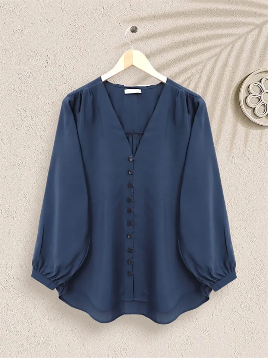 V Yaka Düğmeli Arkası Uzun Gömlek -Laci