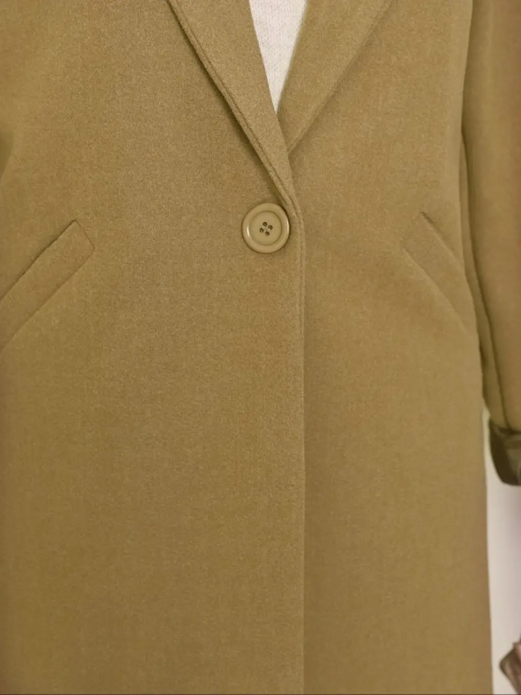 Tek Düğmeli Astarlı Kışlık Kaşe Kaban -Hardal