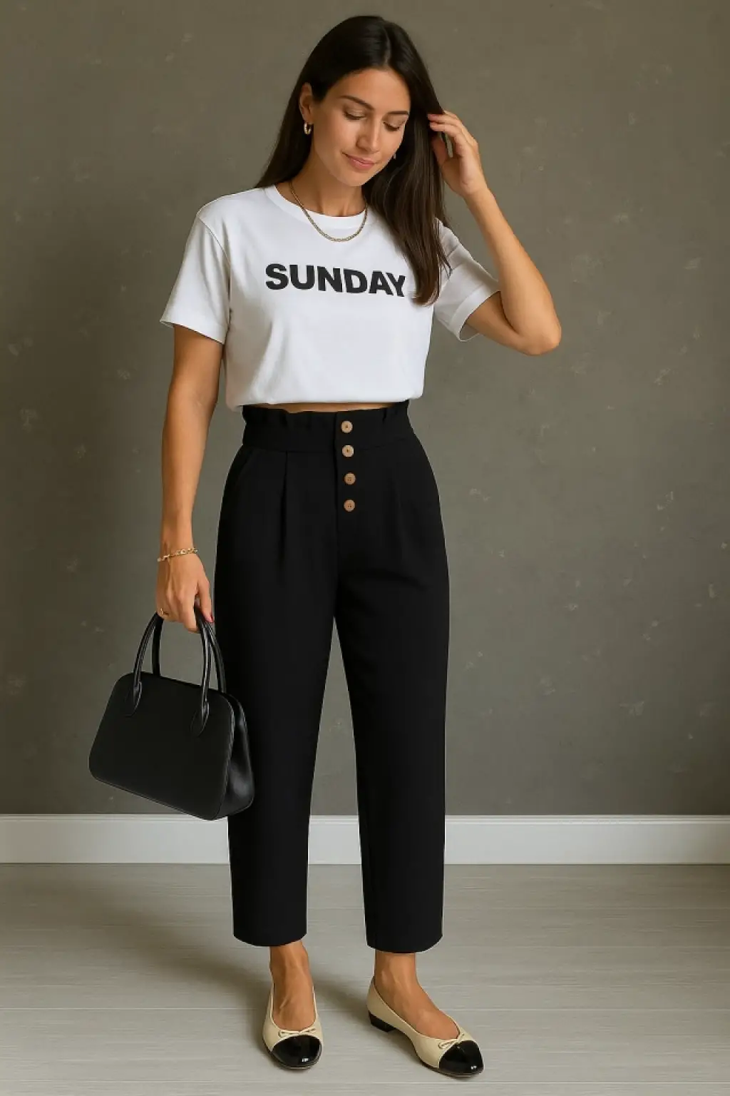 Kadın Yüksek Bel önden Zincir Detaylı Ithal Krep Pantolon
