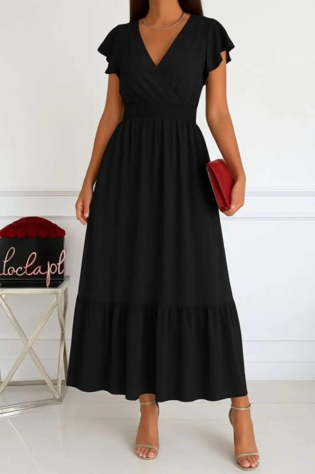 Kadın Kısa Kelebek Kollu Kruvaze Yakalı Beli Lastikli Aerobin Elbise