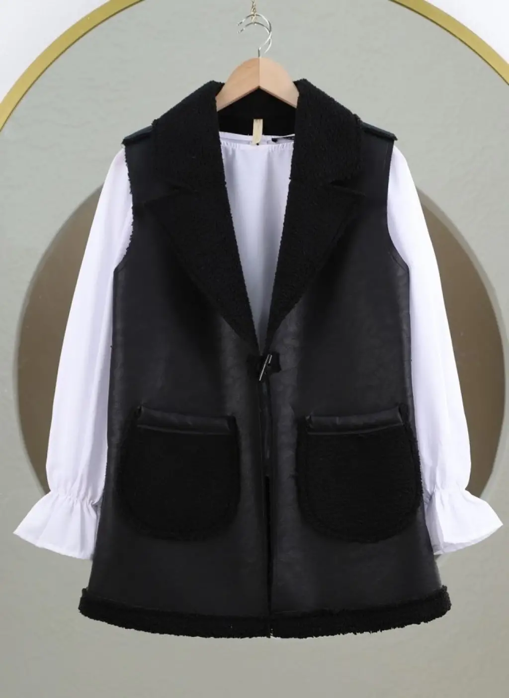 İçi Kuzu Peluş Çift Cepli Yelek -Siyah