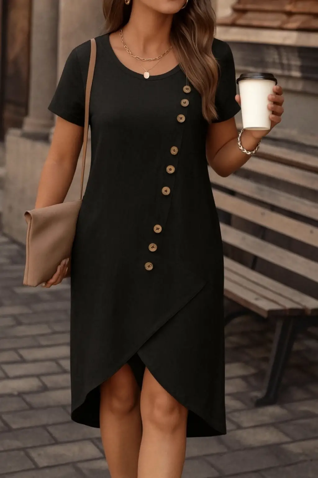 Kadın Kısa Kollu Bisiklet Yaka Düğme Detay Müslim Elbise