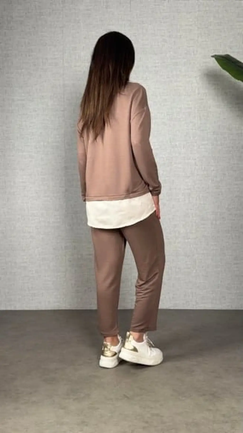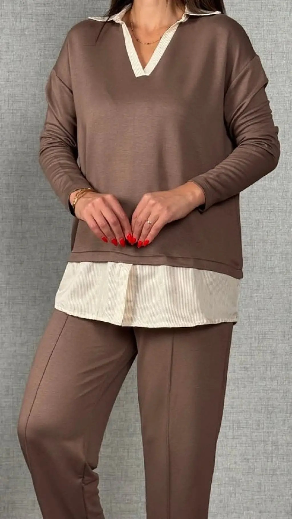 Polo Yaka Gömlek Detay Salaş Balon Pantolunlu ıkılı Takım
