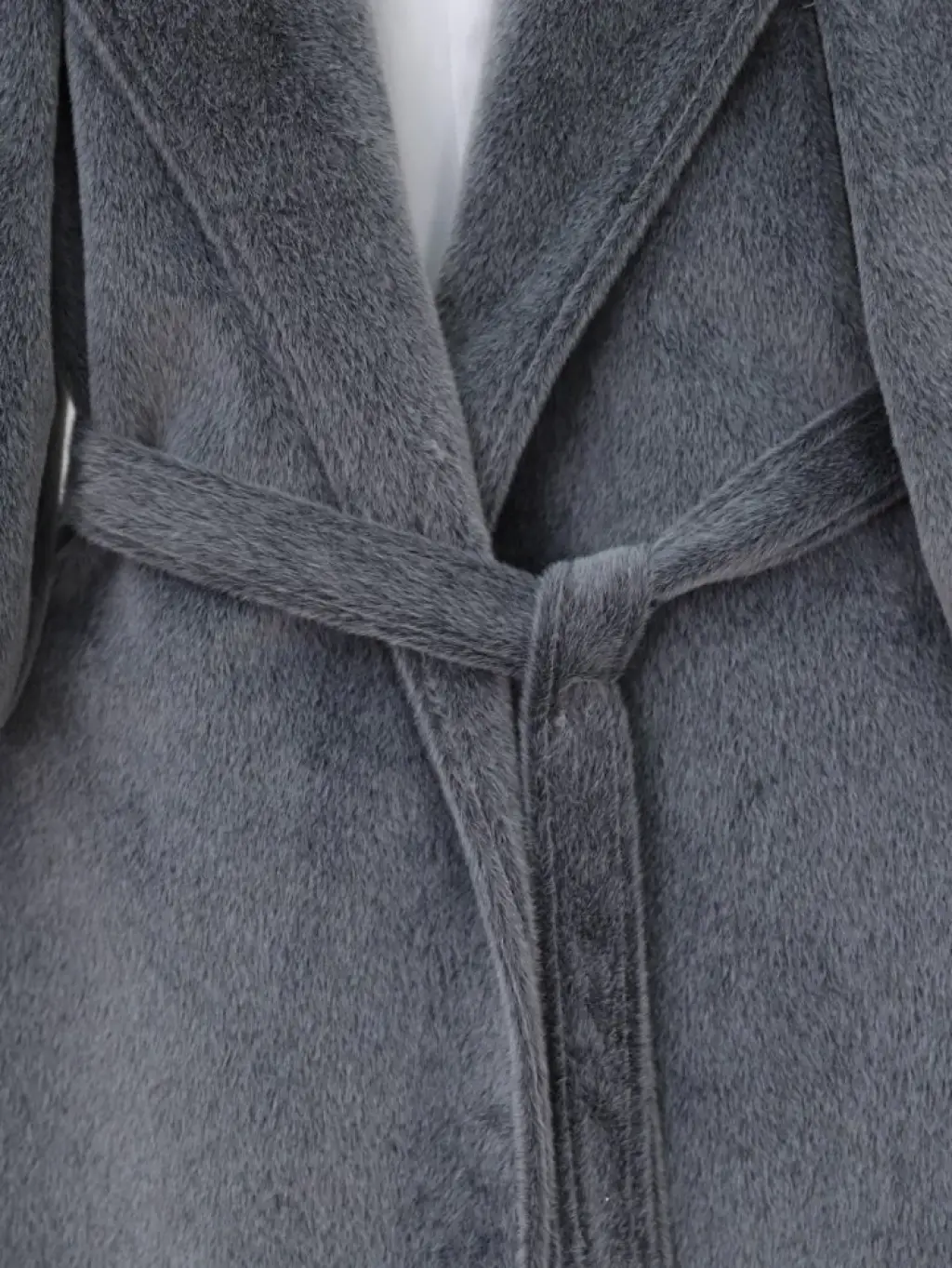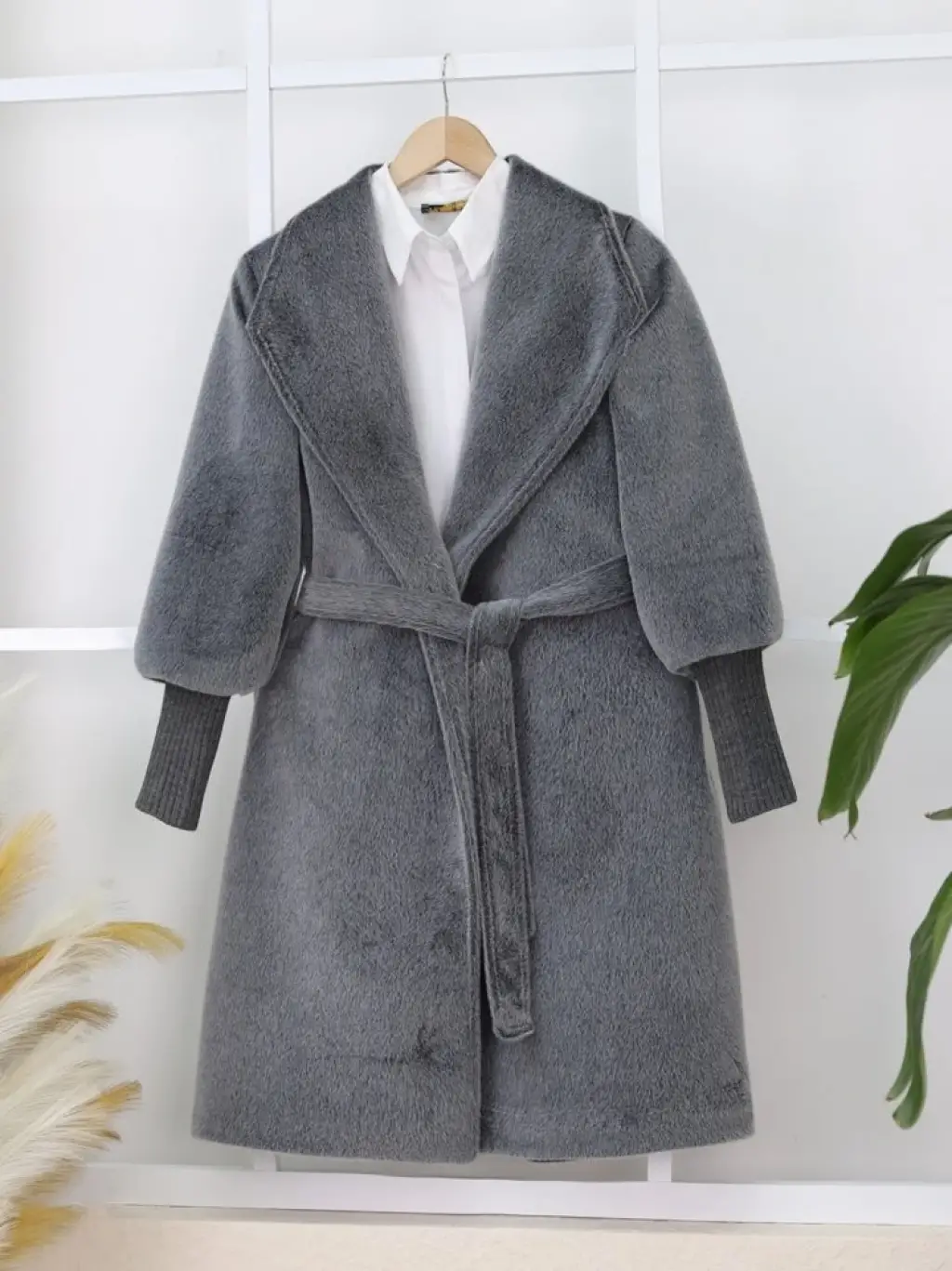 Kolu Ribanalı Şal Yaka Astarlı Kaşe Kaban -Füme