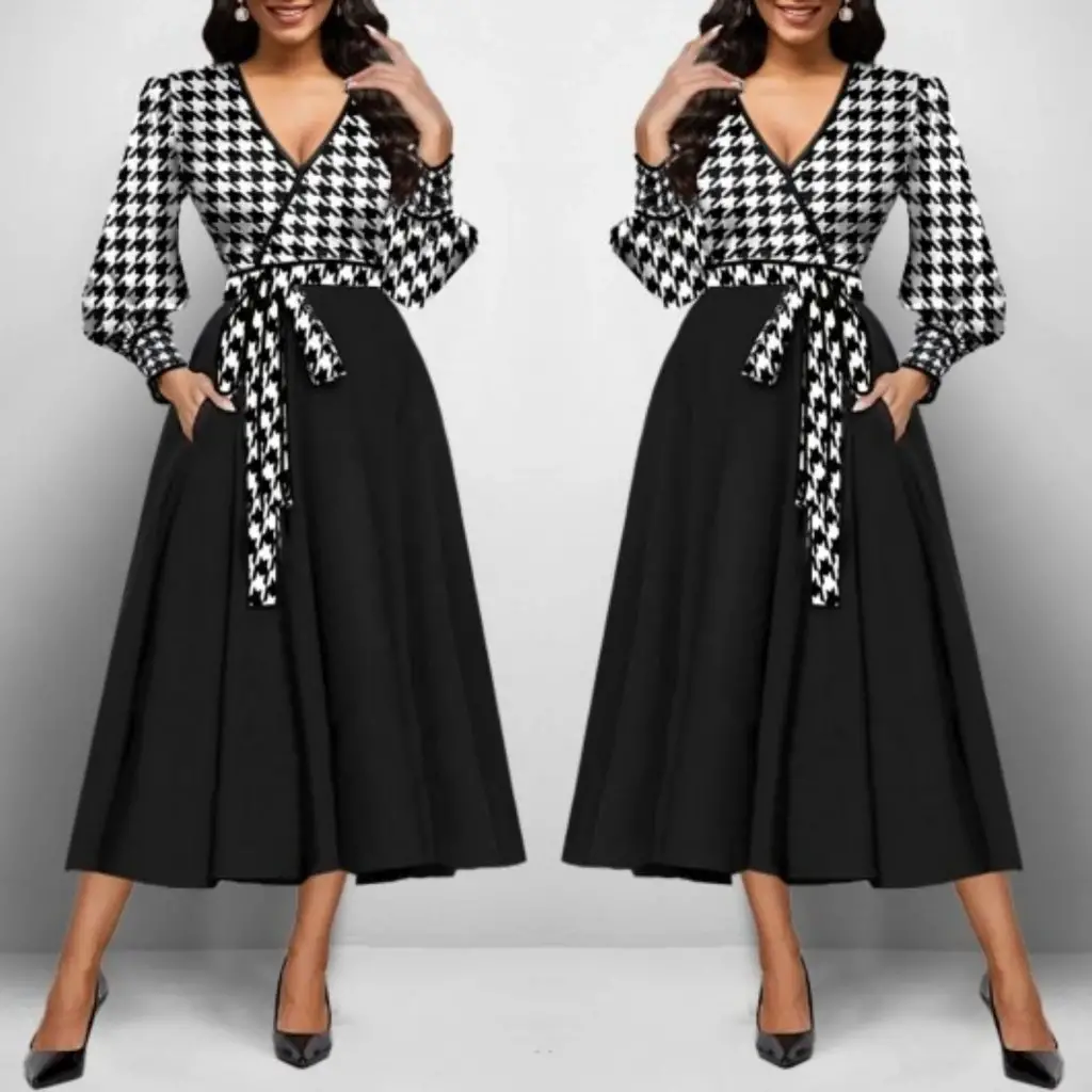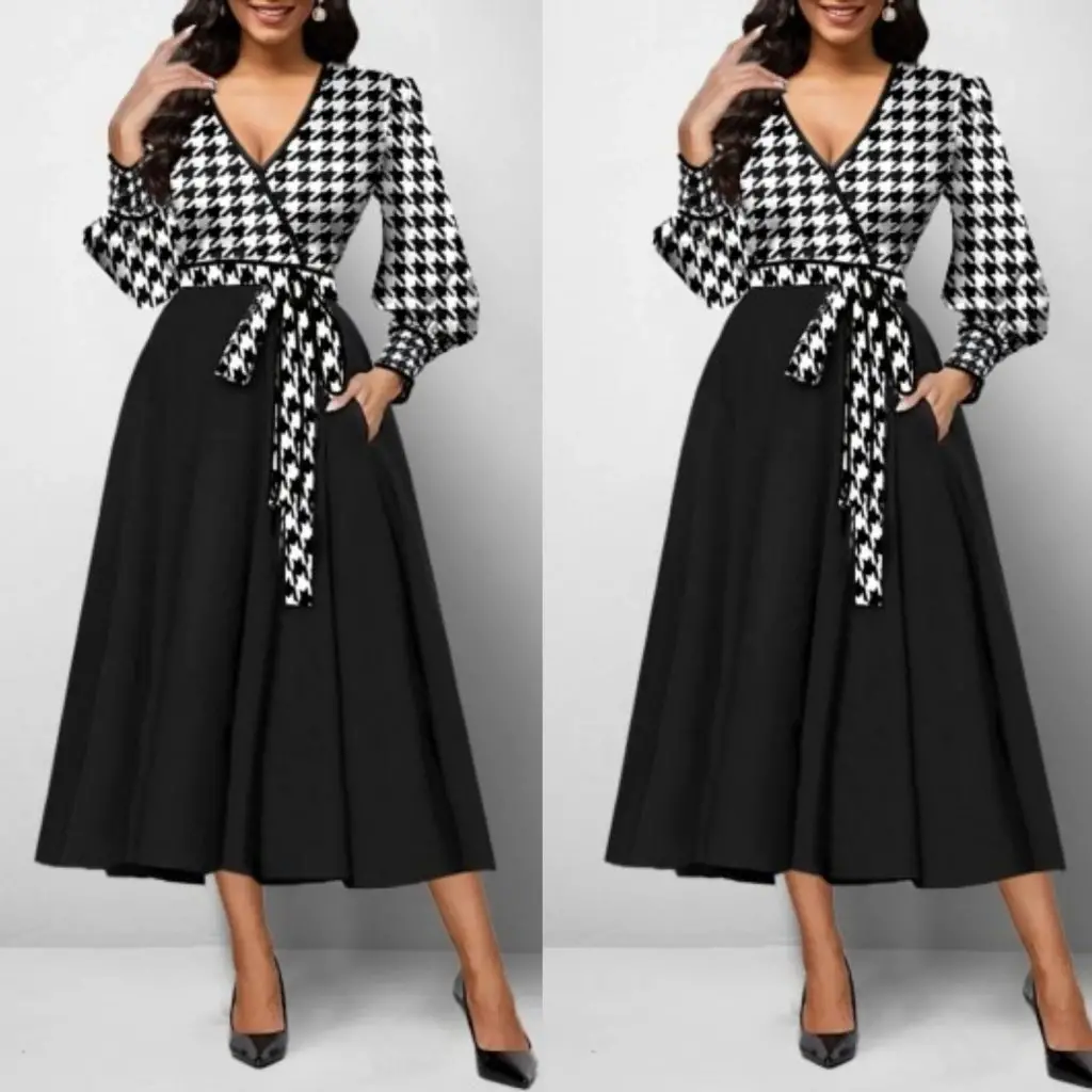 Kadın Uzun Kollu Bisiklet Yaka üst Viskon Alt Ekose Kısa Elbise