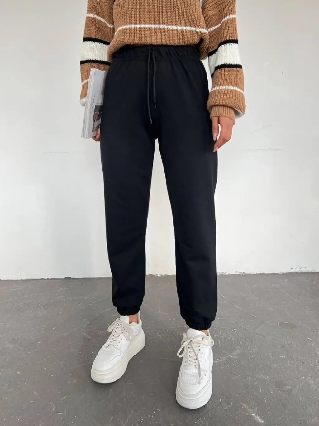 6674 Paçası Lastikli Eşofman Altı - Siyah