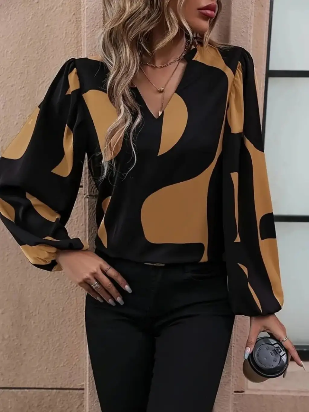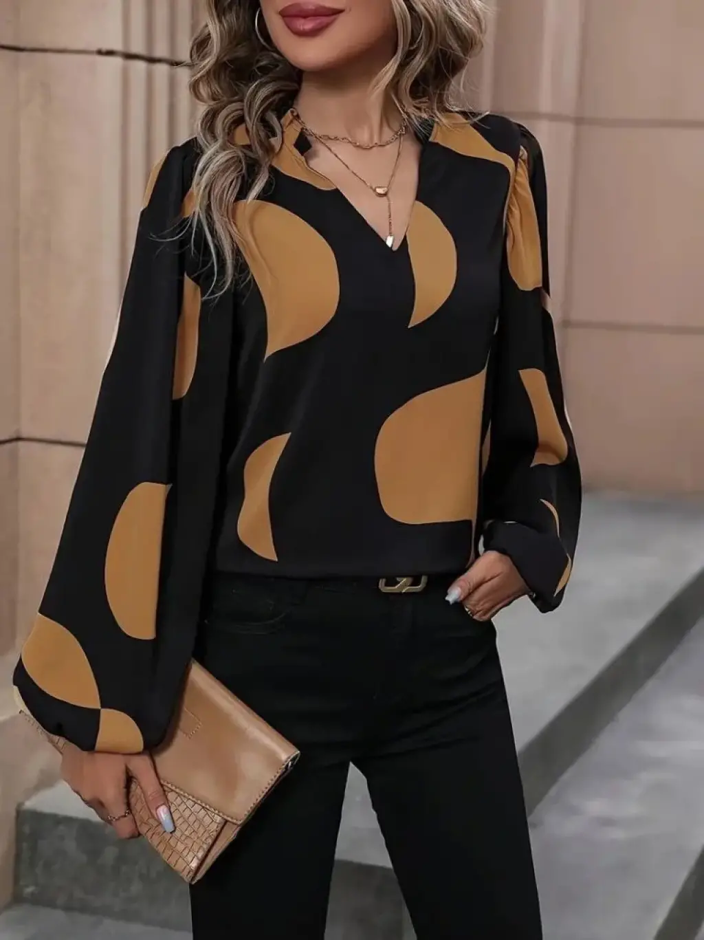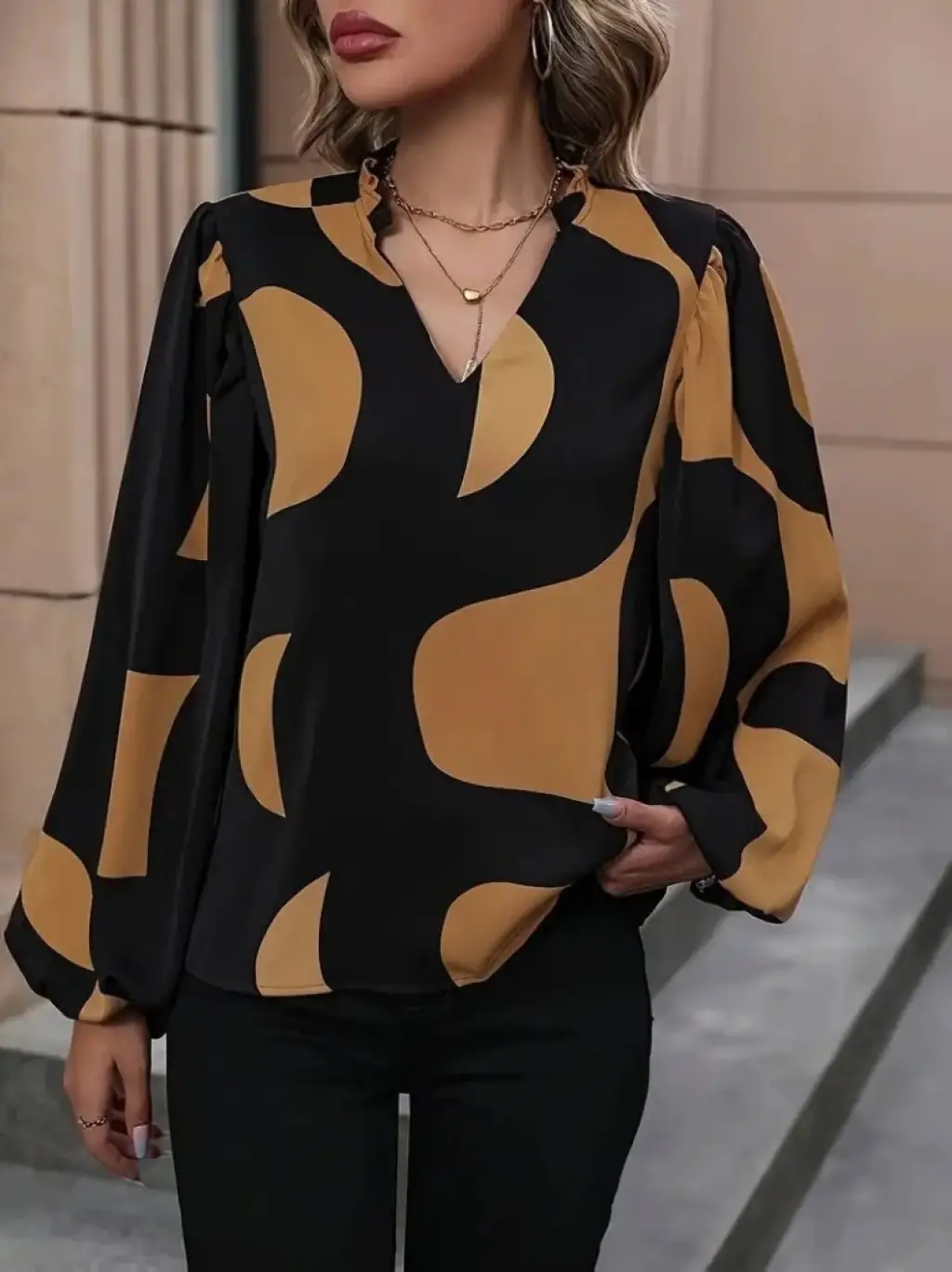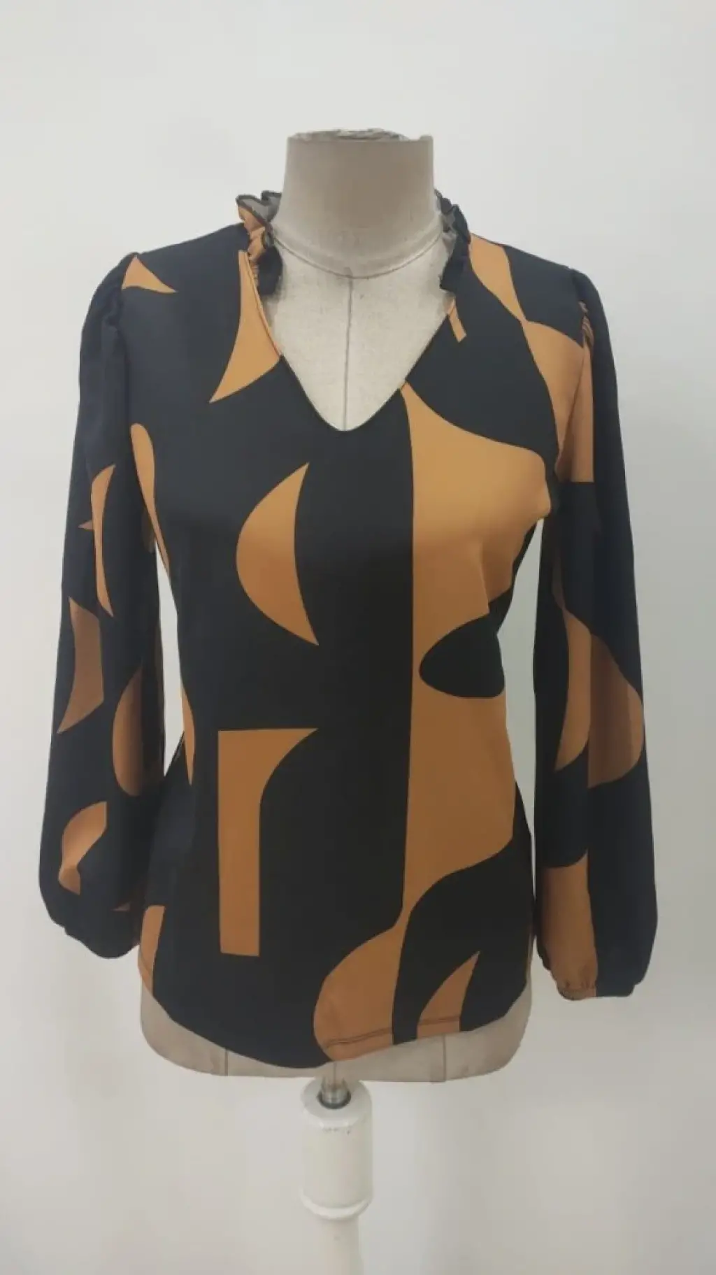 Kadın Uzun Kollu V Yakalı Desenli Modal Bluz