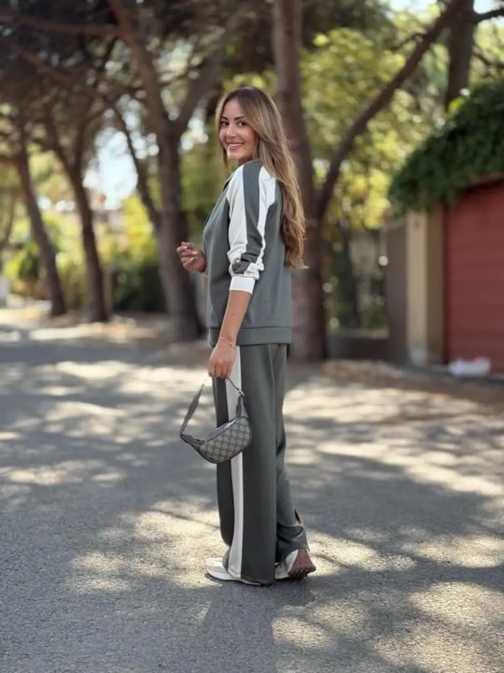 Kadın Hakim Yaka şerit Detay Hırka Ve Bol Paça Pantolon Ikili Takım