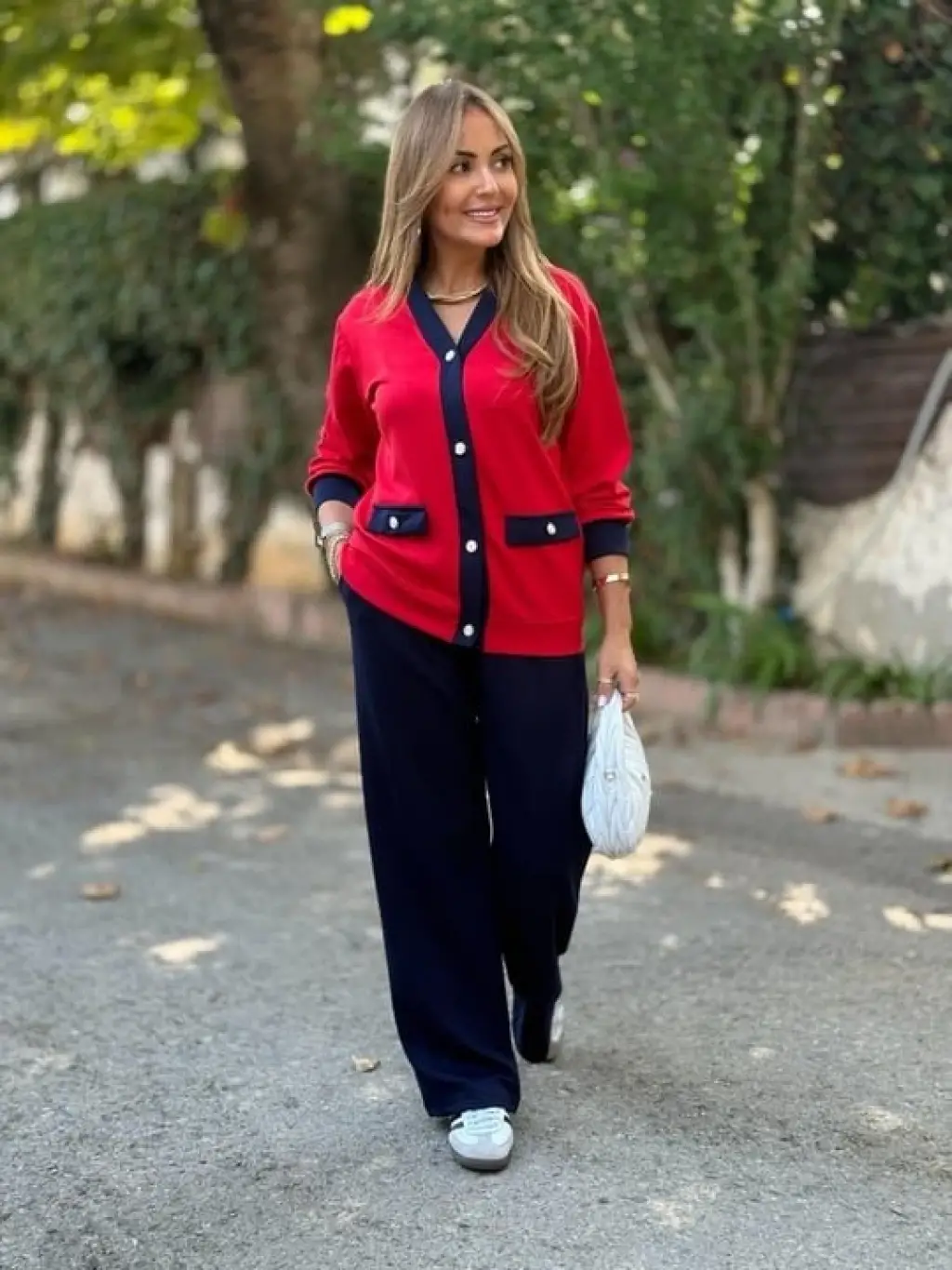 Kadın Uzun Kollu Ribanali Cep Detay Hırka Ve Bol Paça Pantolon Ikili Takım