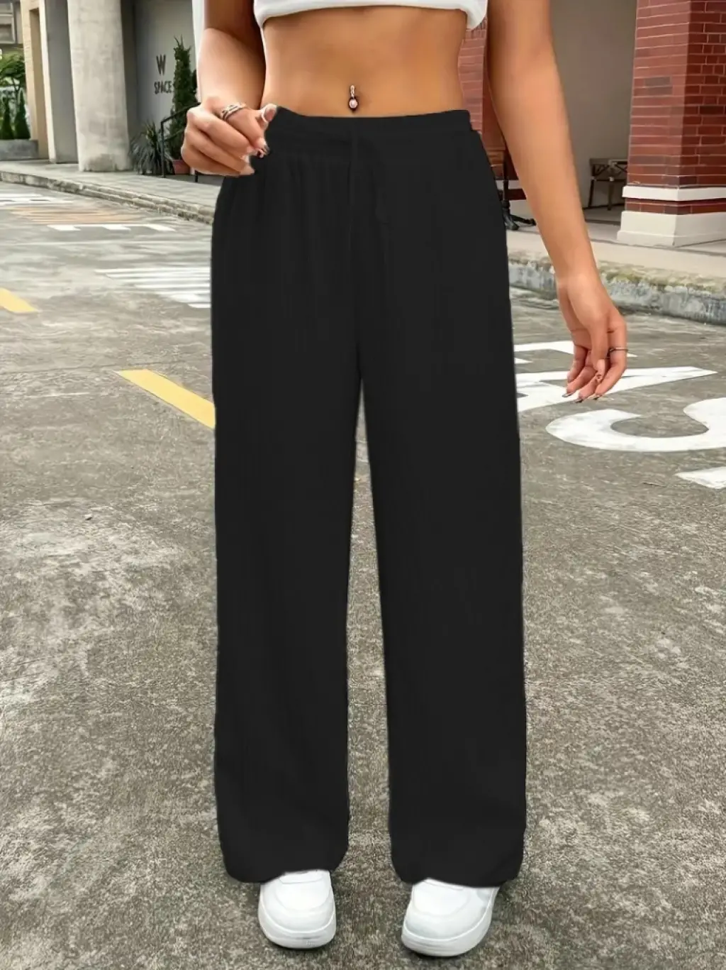 Kadın Yüksek Bel Geniş Paça Detaylı Cepli Ithal Krep Pantolon