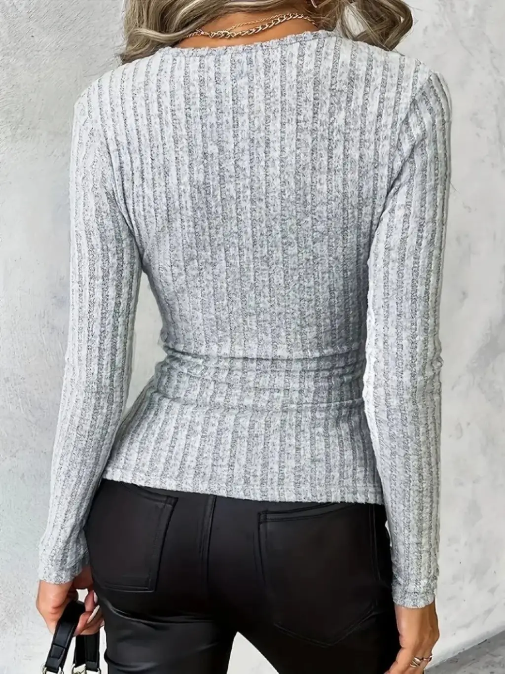 Kadın Uzun Kollu Derin Yuvarlak Yaka Kaşkorse Bluz