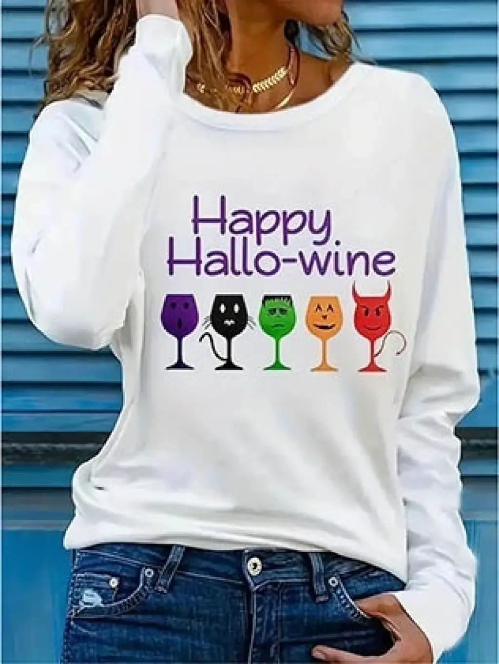Kadın Uzun Kollu Bisiklet Yaka Baskılı Iki Iplik Bluz