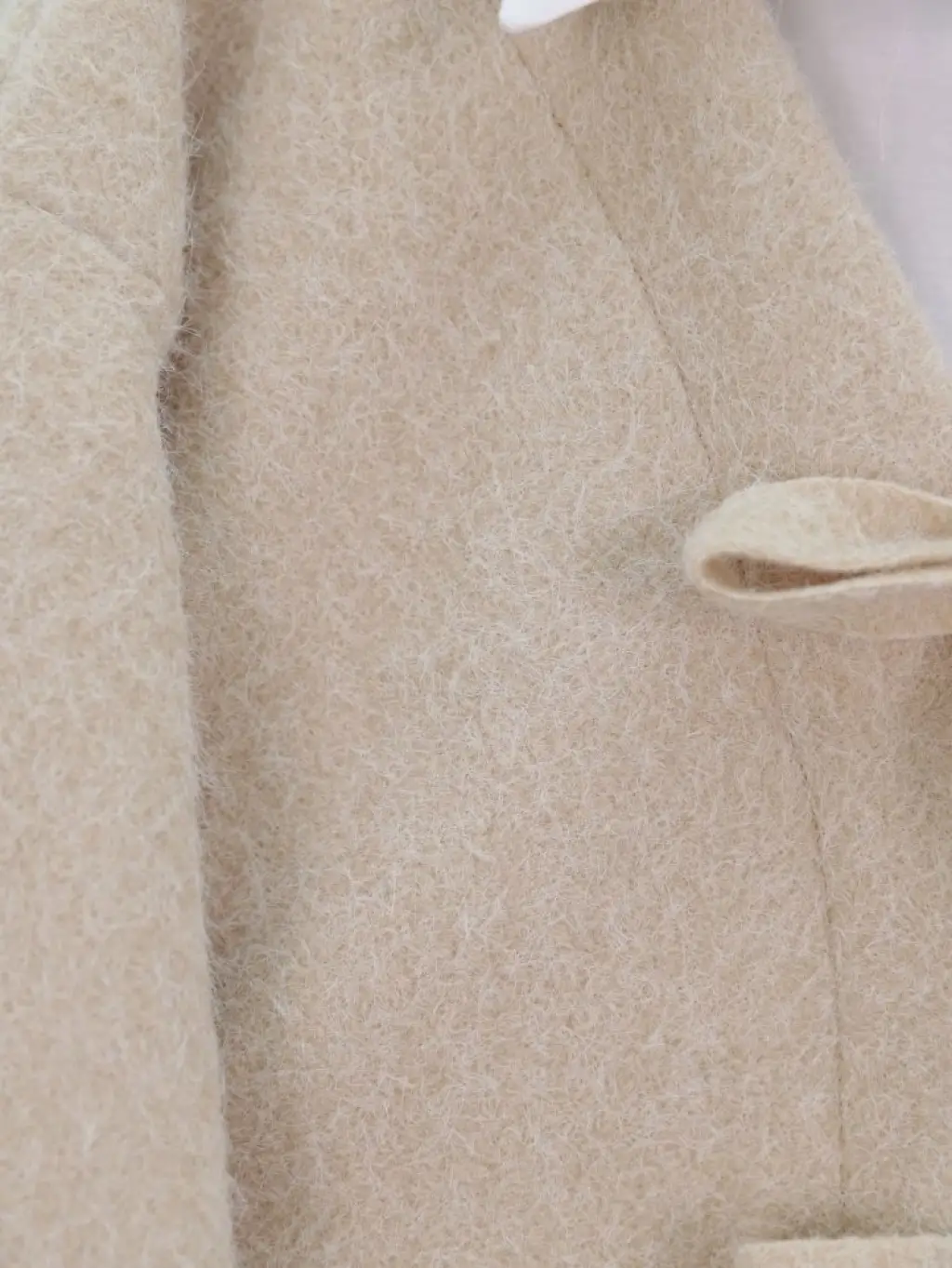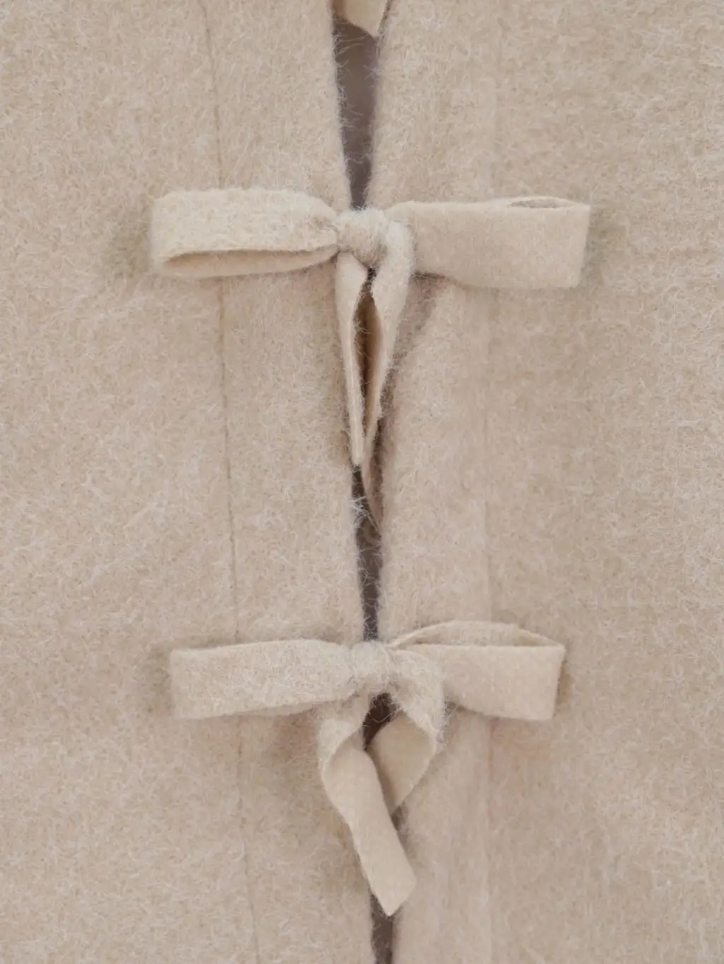 Önü Bağlamalı Kırçıllı Kaşe Ceket -Bej