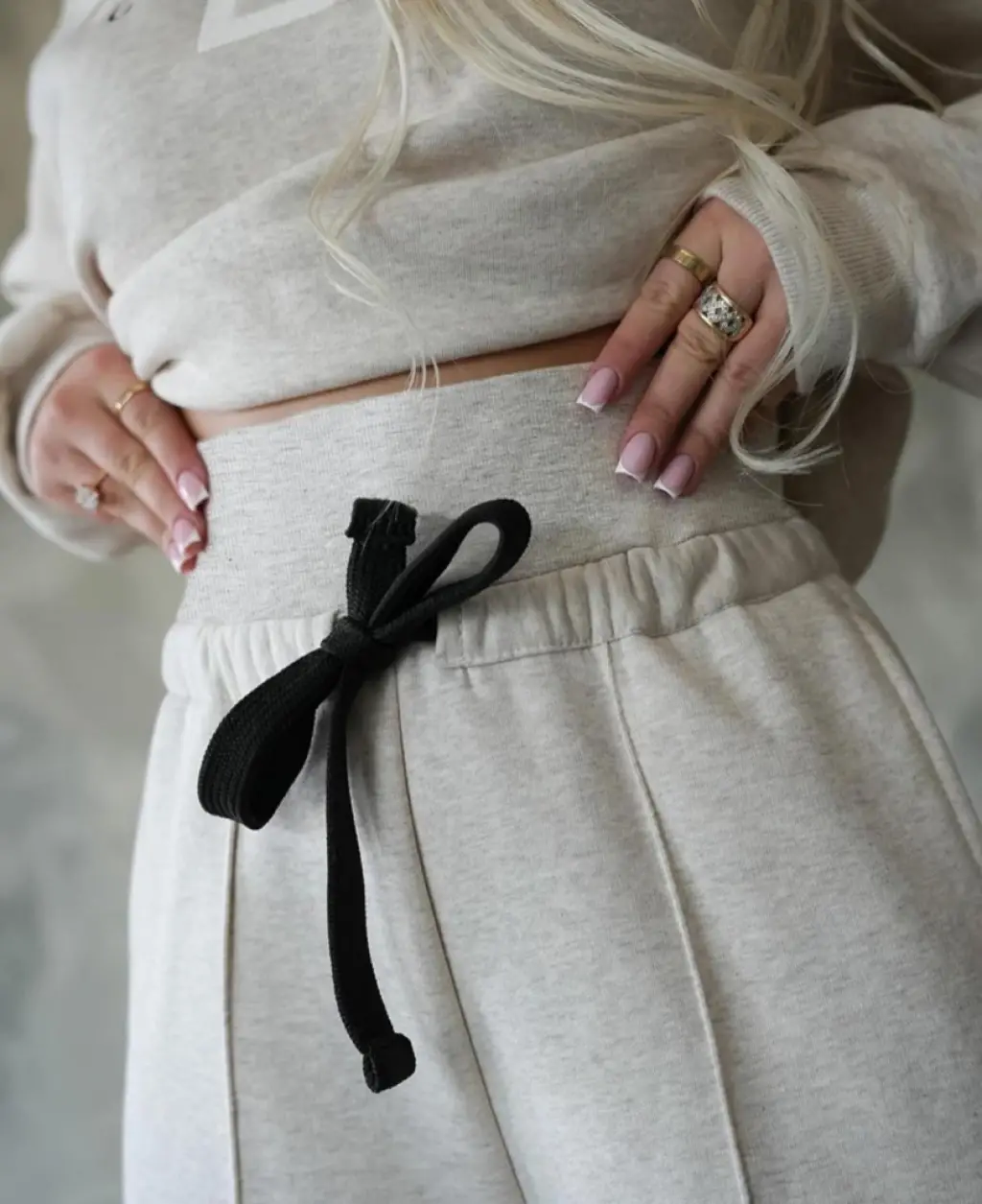 Bağcıklı Tunik Pantolon İkili Takım 6752 - Pudra