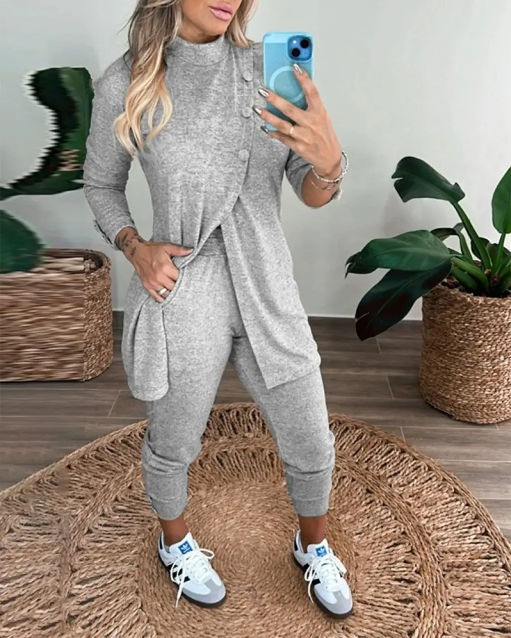Kadın Düğme Ve Blise Detay Arkası Lastikli Takım