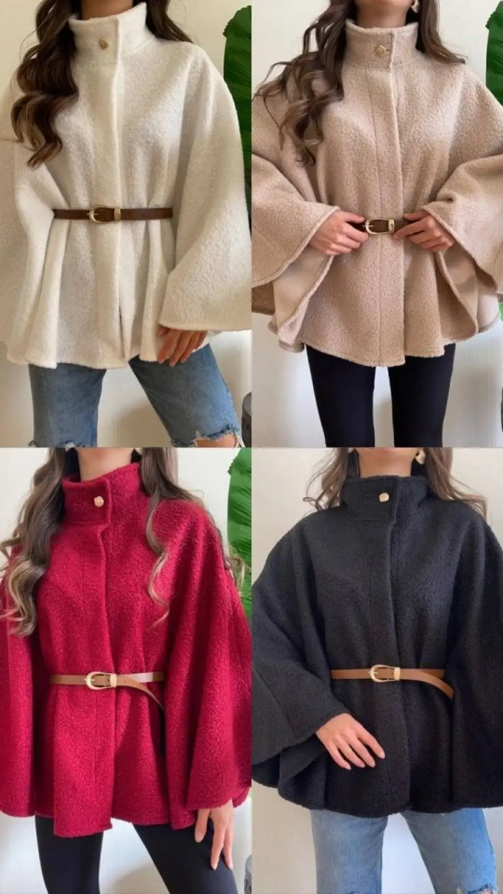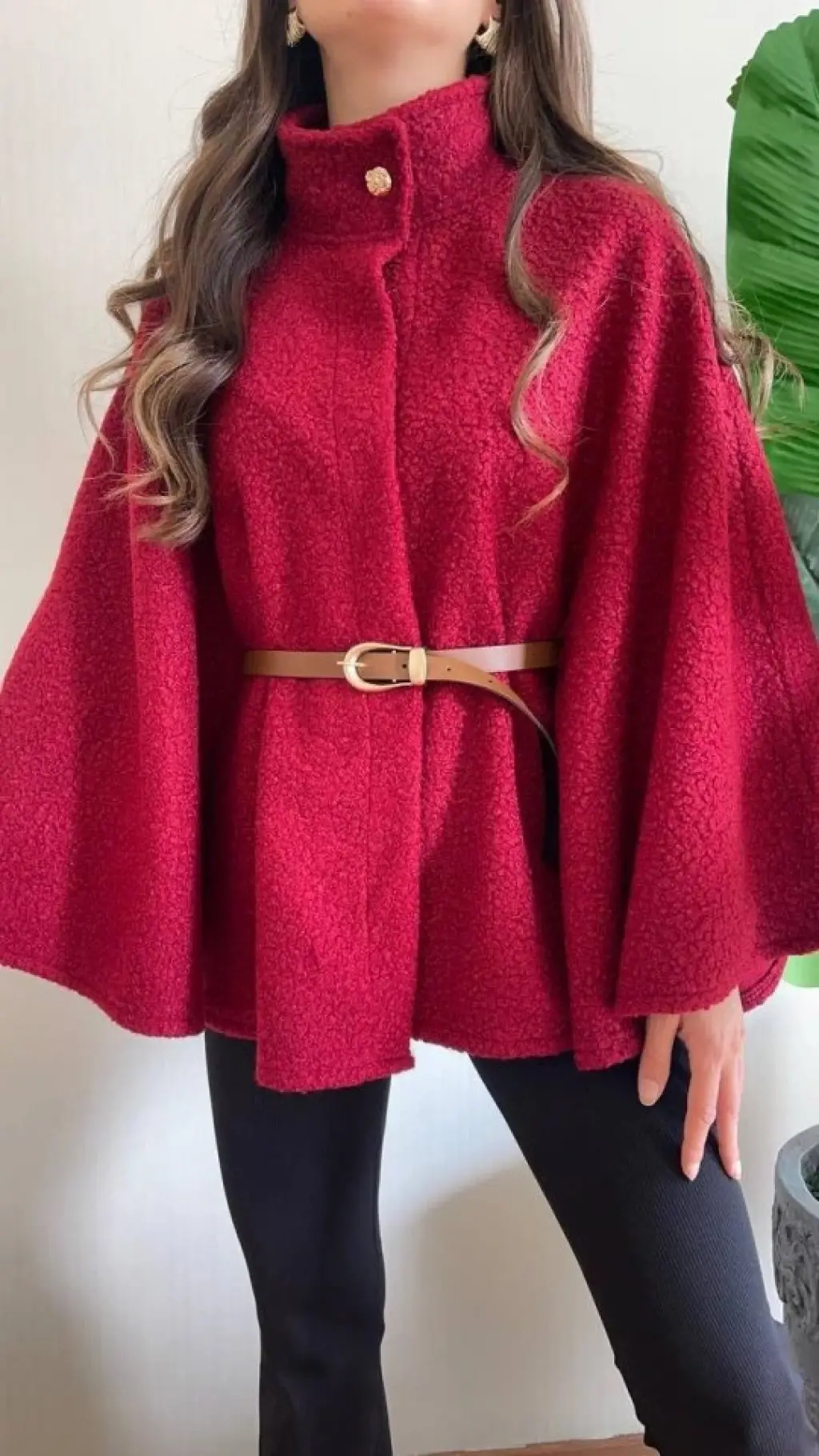 Cepli kuşaklı kaşe kaban kırmızı st26458