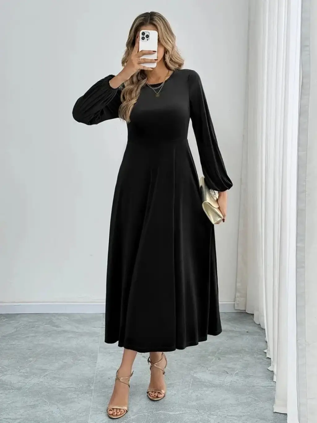 Kadın Uzun Kollu önden Fermuarlı Ithal Krep Elbise