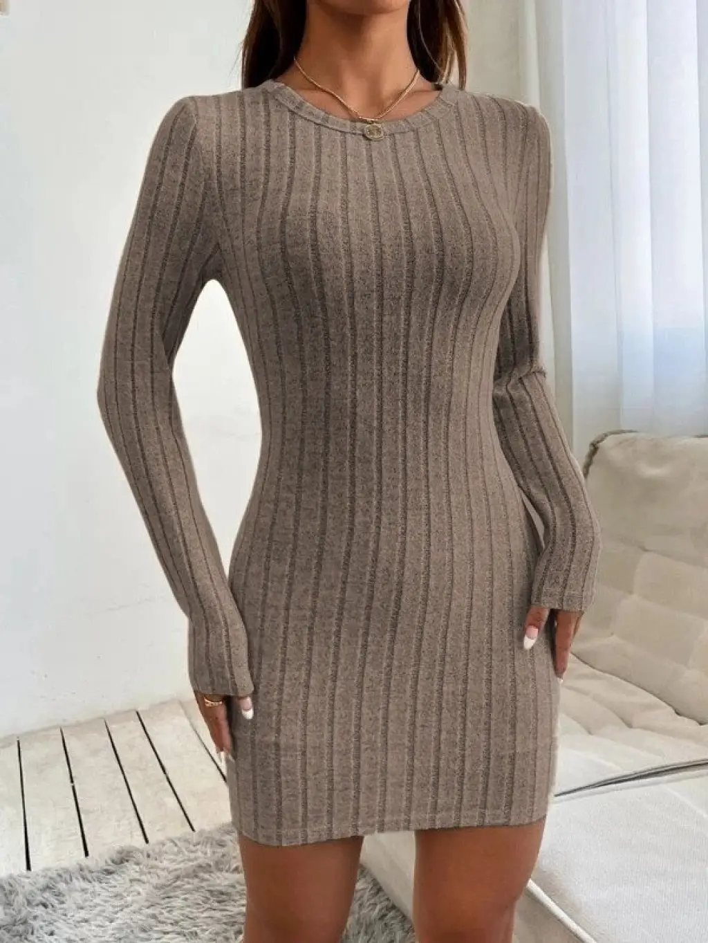 Kadın Uzun Kollu Bisiklet Yaka Iki Iplik Elbise