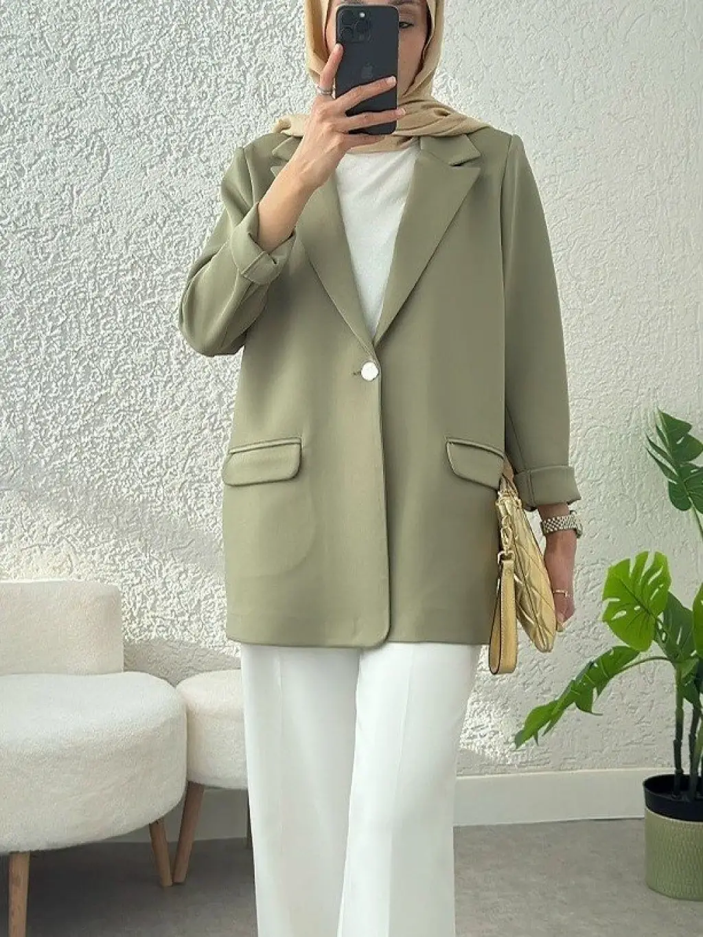 Cepli Tek Düğmeli Likralı Ceket -Çağla Y.