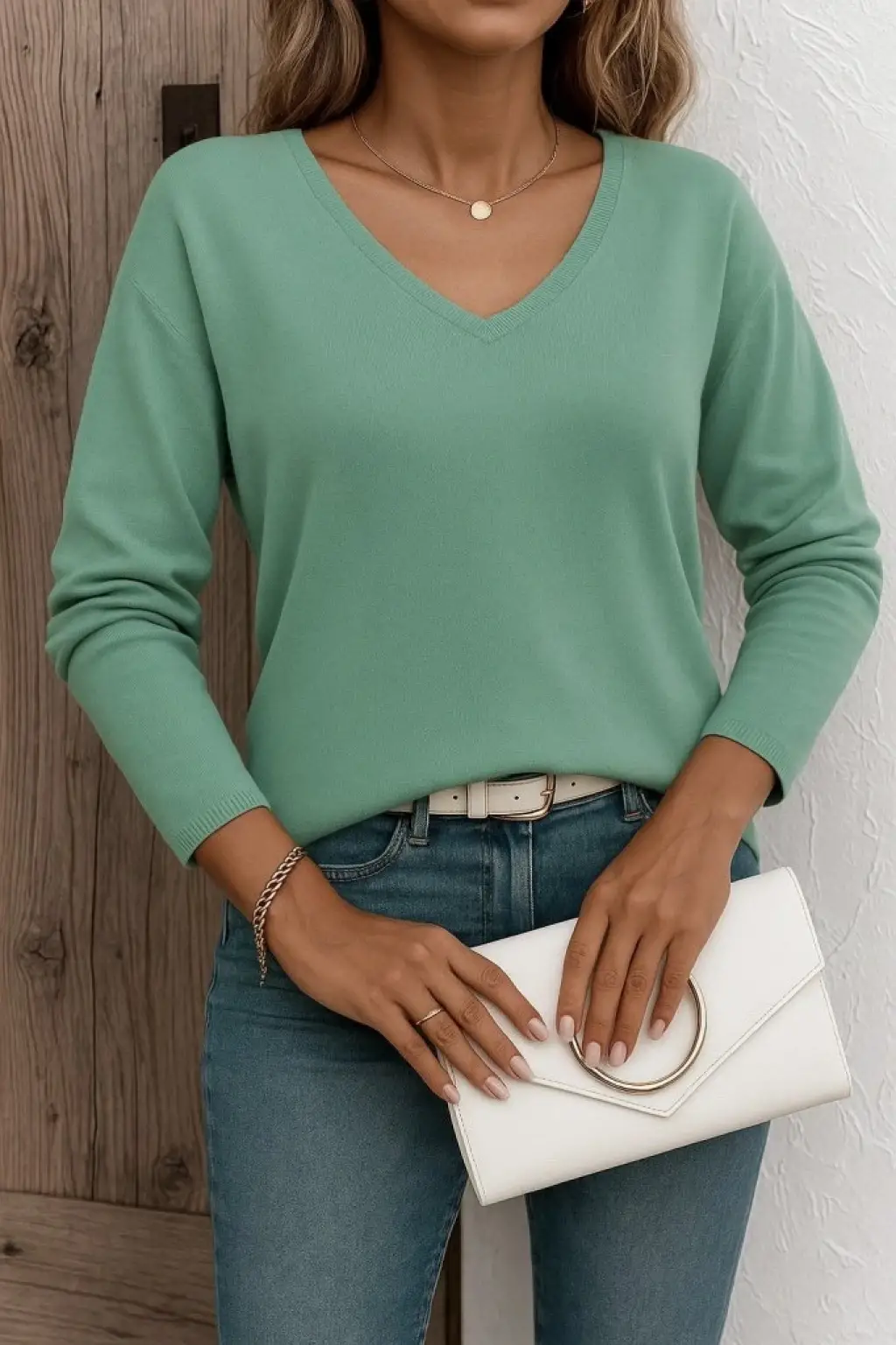 Kadın Uzun Kollu V Yaka Triko Bluz