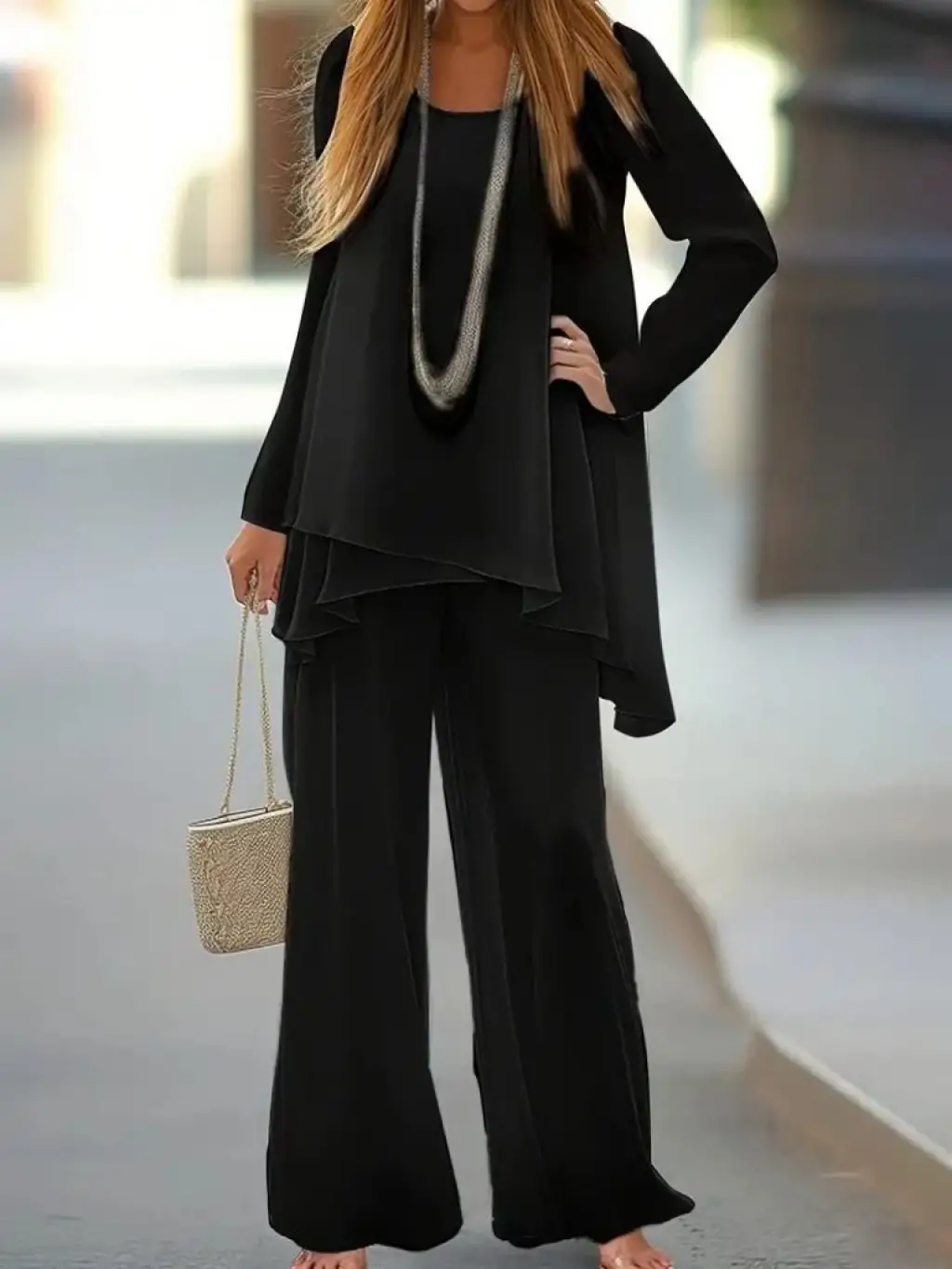 Kadın Uzun Kollu Asimetrik Detaylı Salaş Sandy Bluz Ve Pantolon Ikili Takım