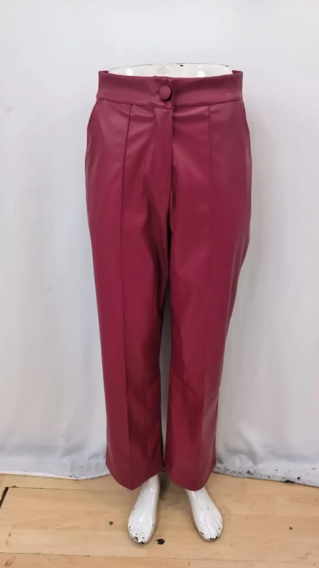 Kadın Yüksek Bel önden Düğmeli Deri Pantolon