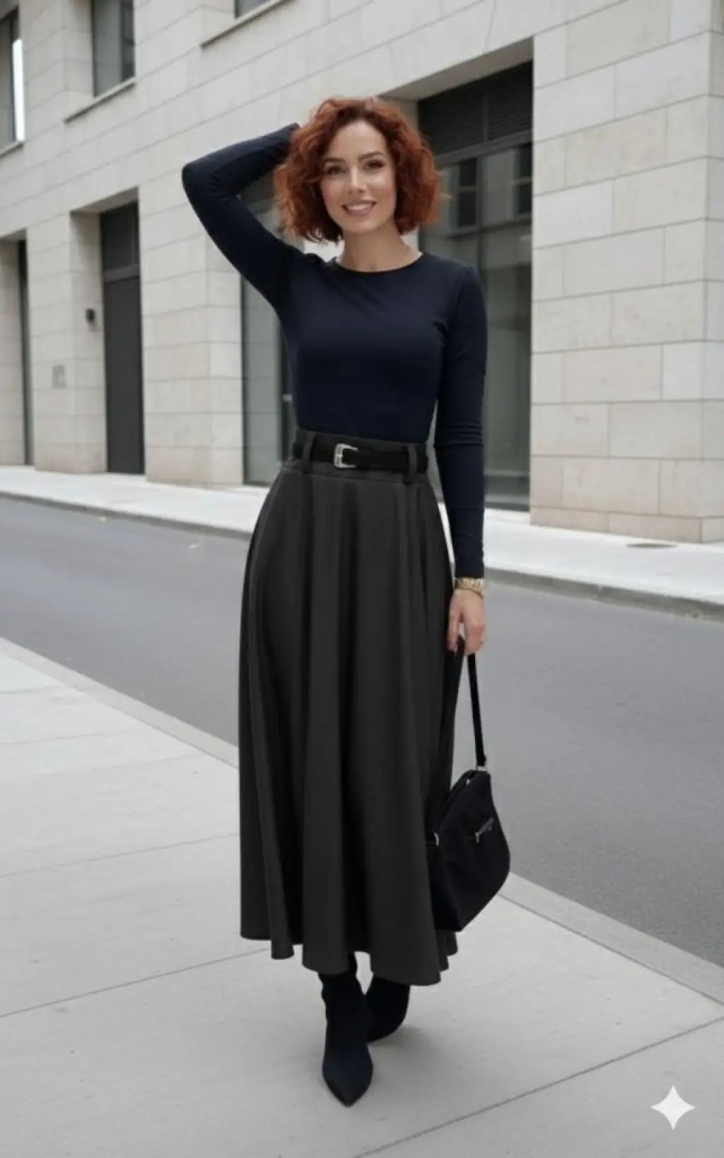 Kadın Yüksek Belli Maxi Deri Kemersiz Etek