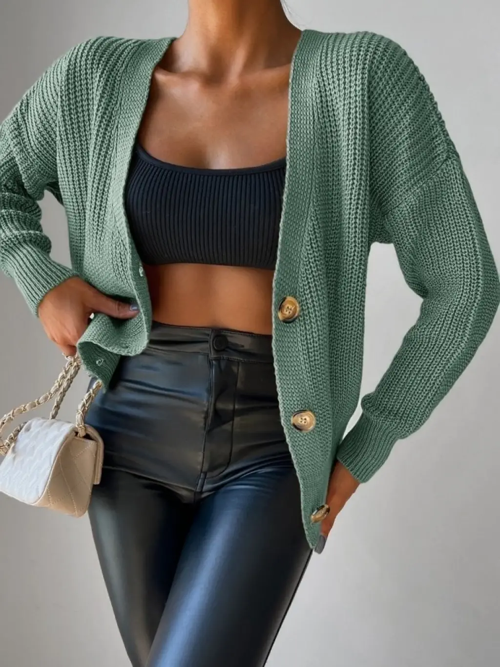 Kadın Uzun Kollu Düğme Detay Triko Bluz