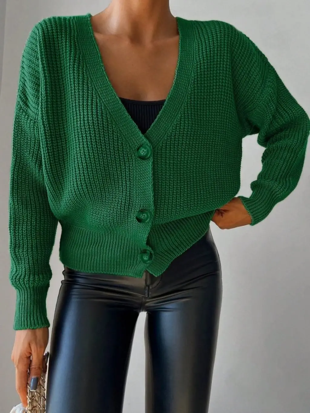 Kadın Uzun Kollu Düğme Detay Triko Hırka