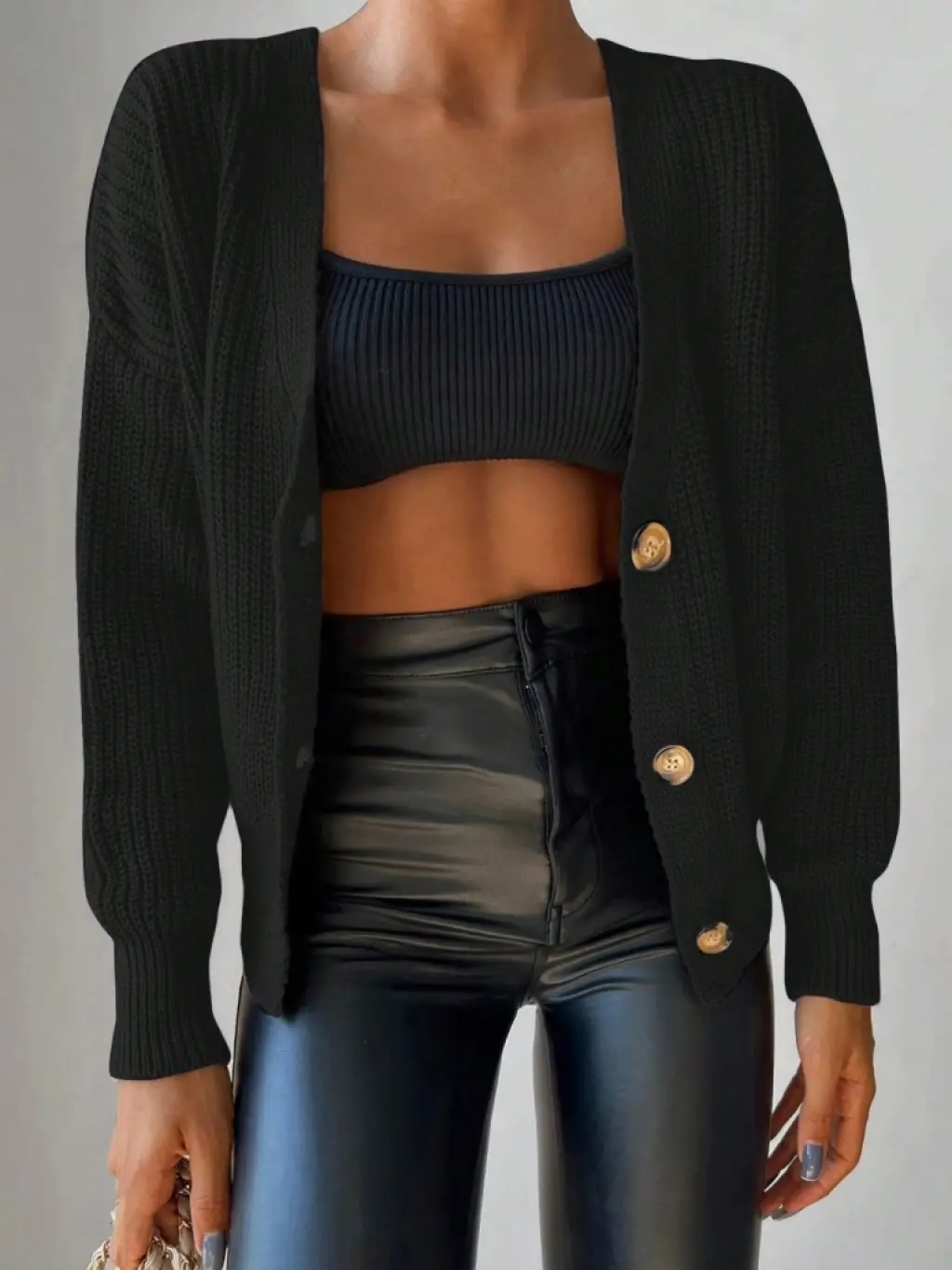 Kadın Uzun Kollu V Yaka Düğme Detaylı Yumoş Bluz