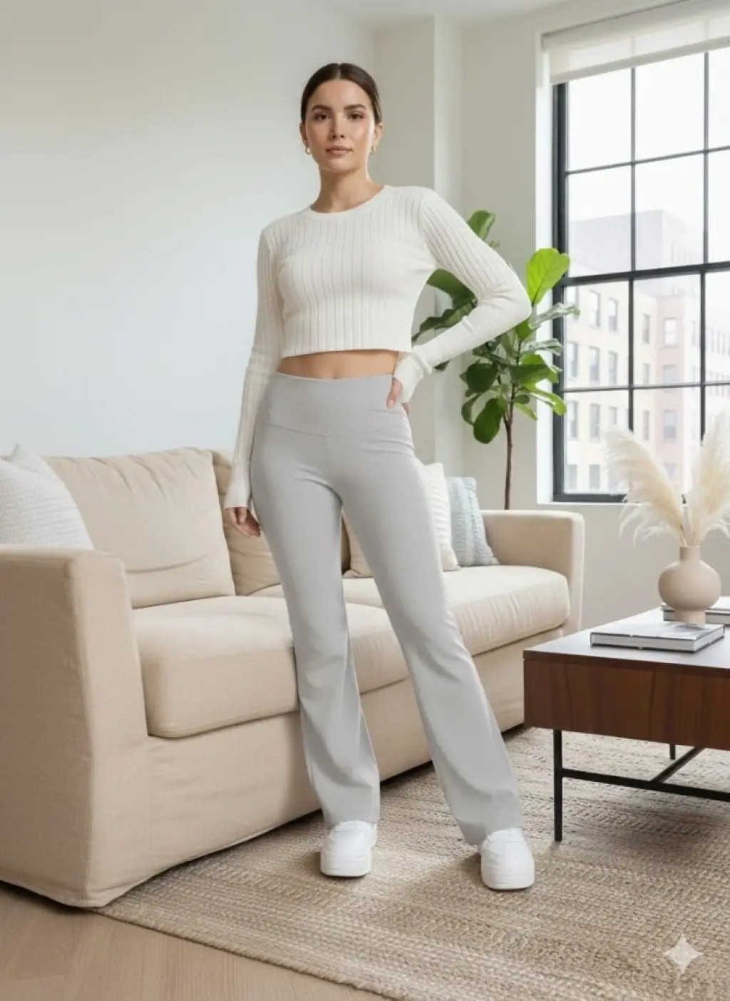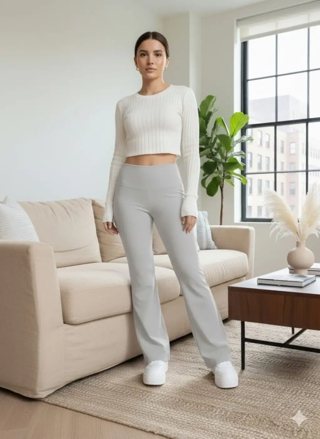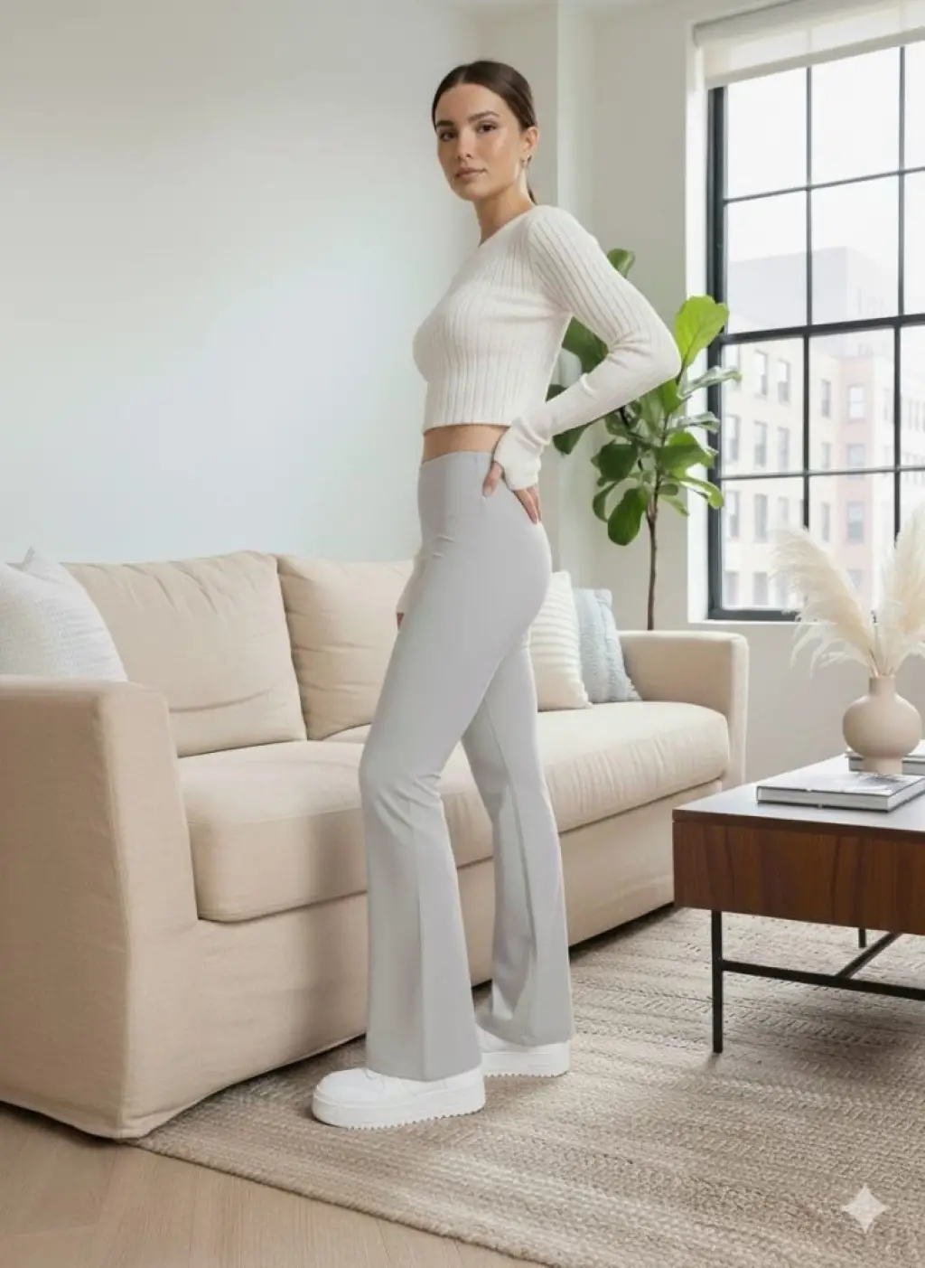 Kadın Yüksek Bel Ispanyol Paçalı Pantolon Tayt