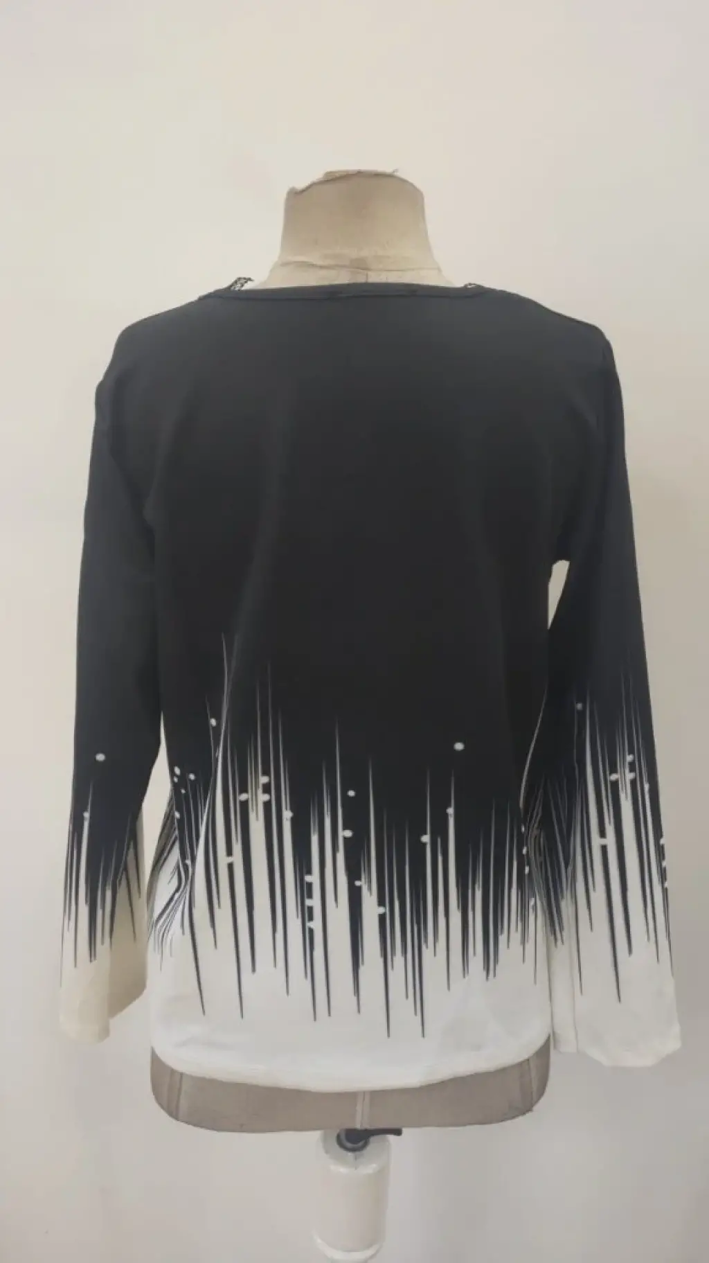Kadın Uzun Kollu Bisiklet Yaka Renkli Blok Baskı Dalgıç Bluz