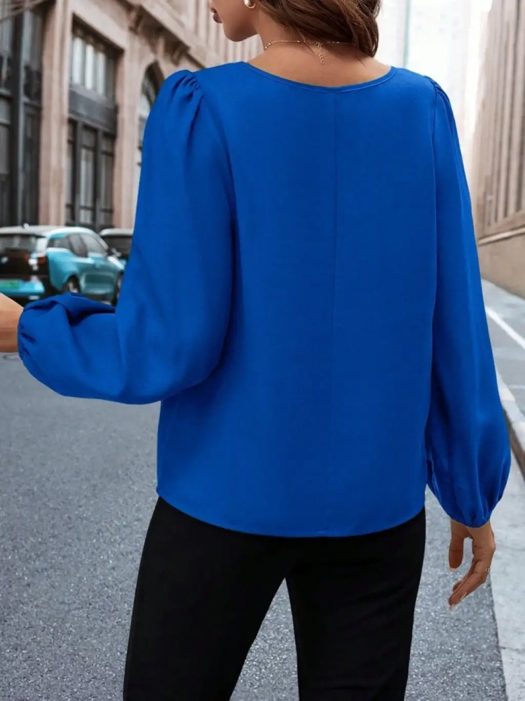 Kadın Uzun Kollu Yakadan Bağlamalı Viskon Iki Iplik Bluz